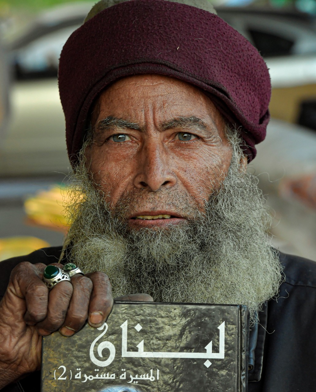 المغربي ذو اللحية البيضاء الطويلة يستقبل زواره بكل لطف ومودّة، ولا تفارق الابتسامة وجهه الذي يبدو عليه التعب والارهاق، يتحدث بلكنة مصرية حيث "درس الهندسة في جامعة القاهرة". وعند سؤاله عن جنسيته، يؤكد أنه لبناني ولد في بيروت ويعود أصله إلى مرتفعات كفرشوبا. يقضي الرجل الثمانيني وقته بين الكتب ولا يفارق المكان سوى للقيام بمشوار مهمّ أو للاستحمام في محطة الوقود المجاورة، ويعتمد في طعامه على ما تُقدّمه له بعض الجمعيات.