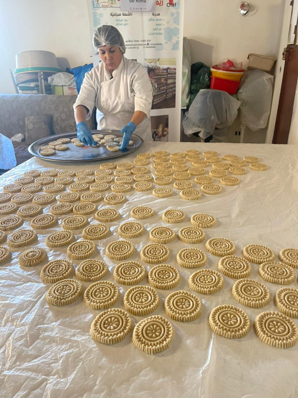 أما السيدة ريما برقاشي من بلدة دير الأحمر فهي منشغلة بتحضير كعكات العيد بشكلها الدائري، نظراً لتاج الأشواك الذي وضع على رأس السيد المسيح قبل صلبه، وهو أول عبور من عالم الموت إلى عالم الحياة، حيث ارتبط بالخبز الفطير الذي كان اليهود يأكلونه في وقت عيد الفصح اليهودي، وهم يحملون عصيّهم ويستعدون للسير والعبور من أرض العبودية إلى أرض الحرية.