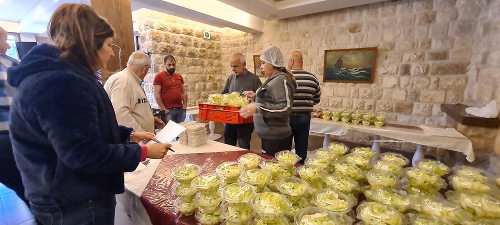 ككل أربعاء، ينشط طاهي المطعم أغيد صالح ومعاونته دنيا شمعون منذ السابعة صباحاً، بإعداد الوجبة الأسبوعية. وجبة الأربعاء الفائت كانت دجاج مع الأرز واللحمة، وسلطة. مع بدء تسرب رائحة تشقّ القلب، التاسعة من قبل الظهر، كانت السيدات المتطوعات في لجنة "حاملات الطيب" التابعة للأبرشية، قد بدأن بالتوافد والانضمام إلى متطوعي ومتطوعات جمعية "السامري الشفوق" و"اتحاد جمعيات زحلة". كخلية نحل، تتوزع المهام، وتتقاطع الأيدي في توضيب الطبقين البارد والساخن، ومن ثم توزيعها حصصاً، وقد أضيف إليها الأسبوع الفائت قطعة cake تقدمة من أحد المتبرعين. الحادية عشرة، كانت الوجبات في طريقها، مع سائقي الاتحاد، إلى عناوين المنازل الموزعة على 5 خطوط وصولاً إلى تعلبايا. في الوقت نفسه، كان يحضر أفراد إلى المطعم لتسلّم وجباتهم، لتبلغ الوجبات بلدة عيتا الفخار في قضاء راشيا، التي حضر كاهن رعيتها لاستلامها وإيصالها.