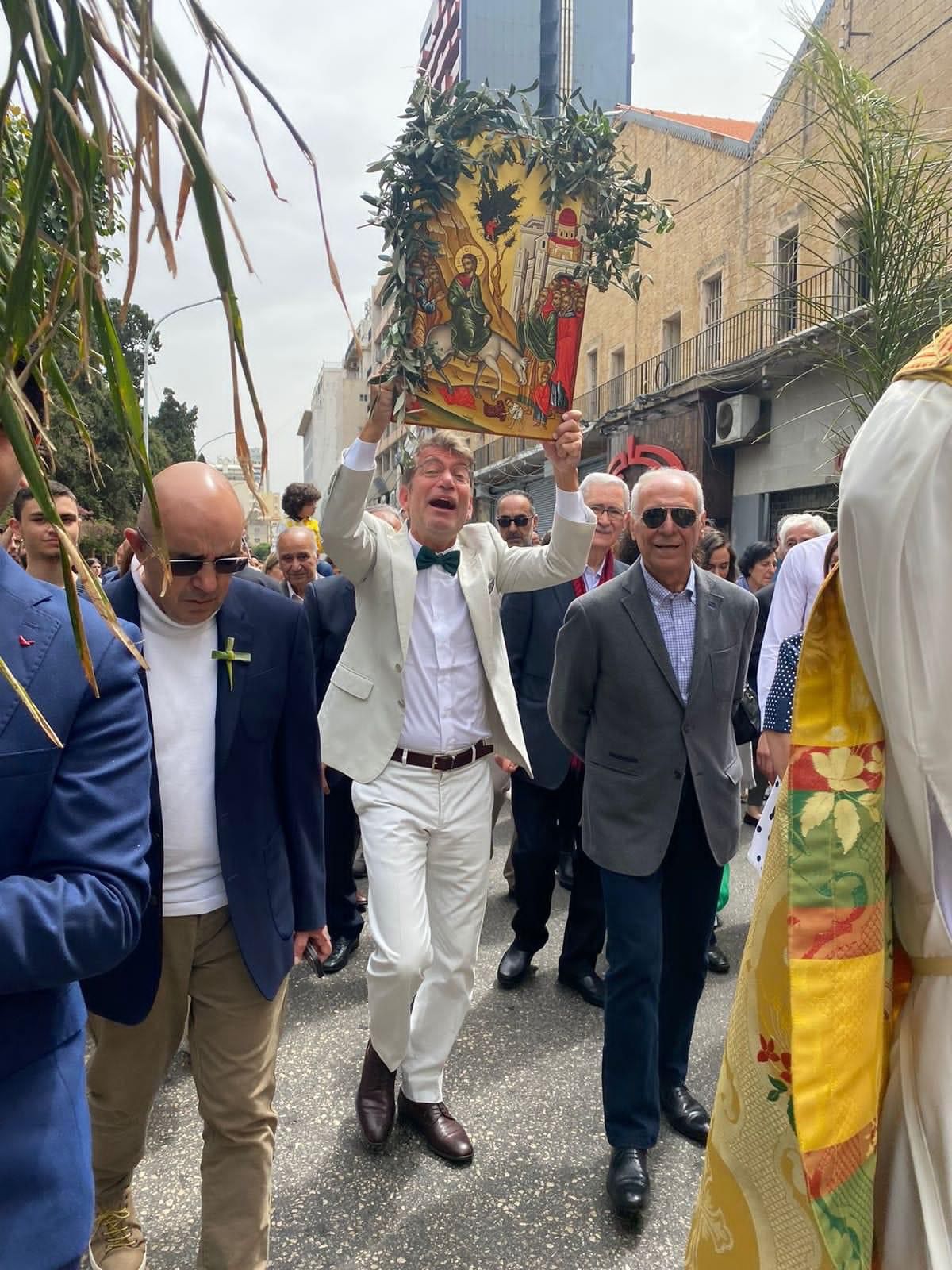 شارك وزير الطاقة والمياه وليد فياض في مسيرة دينية لمناسبة الشعانين. وظهر حاملاً أيقونةً مع أغصان زيتون، وسط الحشود المؤمنة.