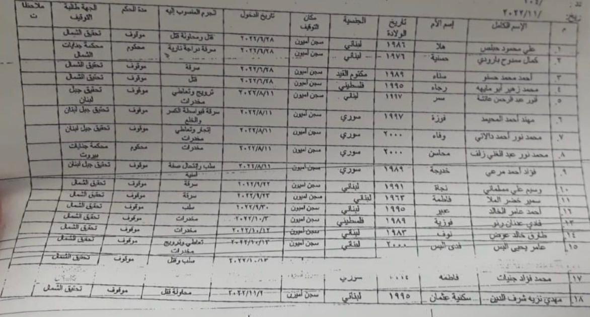 أفادت معلومات عن فرار 18 سجيناً من سجن أميون.