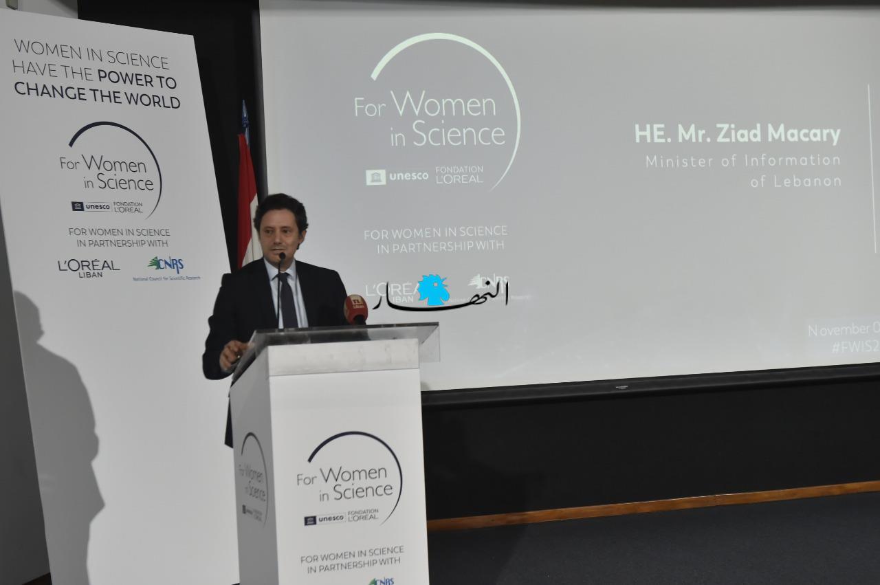 وألقى المكاري كلمةً خلال الحفل، قائلًا: "أنّ هذه الجائزة السنويّة تتوّجُ المرأة ملكةً على عرشِ العلمِ والمعرفة، وتحثُّها على تقديمِ إنجازاتٍ علمية، تُشكّلُ حلولاً لمعضلاتٍ صحيّة وبيئيّة واقتصادية، وتمكُّنها من الإنجاز". وأثنى المكاري على "النكهة اللبنانية الطاغية بحيث أنّ ثلاث باحثات لبنانيات مميزات فزنَ رغم الظروف الصعبة، مما يدلّ على أنّ لبنان الصغير بمساحتِه، يزخرُ بطاقاتٍ كبيرة، لديها القدرة على النهوضِ به". وأردف أنّ "جائزة لوريال ـ اليونسكو تشكّل فسحة أمل، وإبداع، وإثبات للذات، داعيًا وسائل الاعلام إلى "تخصيص مساحة للإعلام العلميّ، والإضاءة على هذه المبادرة، وعلى الفائزات ومشاريعهنّ".
