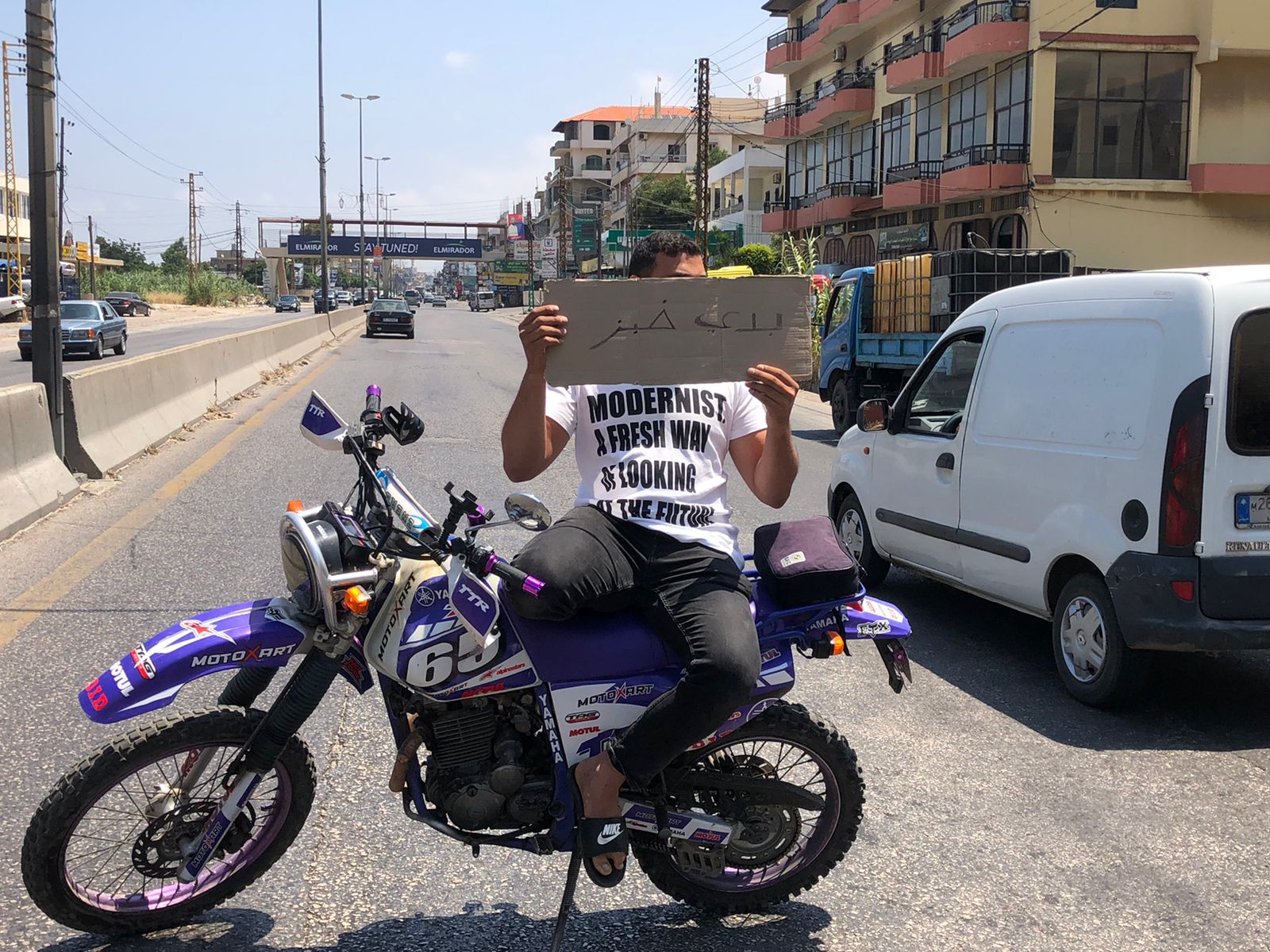أقدم أحد المواطنين في المنية على قطع الطريق بشكل جزئيّ، احتجاجاً على عدم الحصول على الخبز، وقد حمل ورقة كتب عليها: "بدّي خبز".