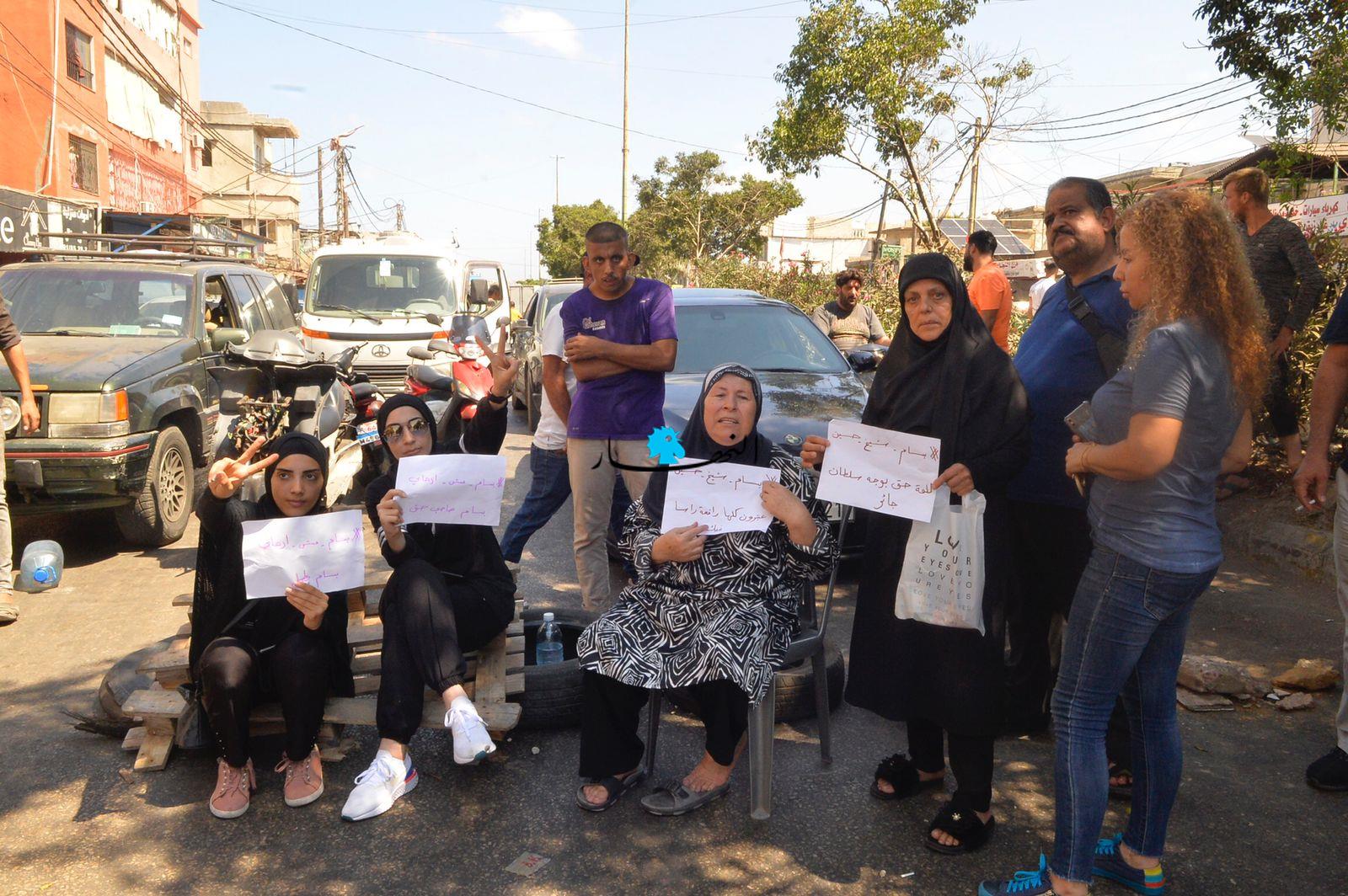 عائلة المودع بسام الشيخ حسن تقطع الطريق في الأوزاعي (حسام شبارو).