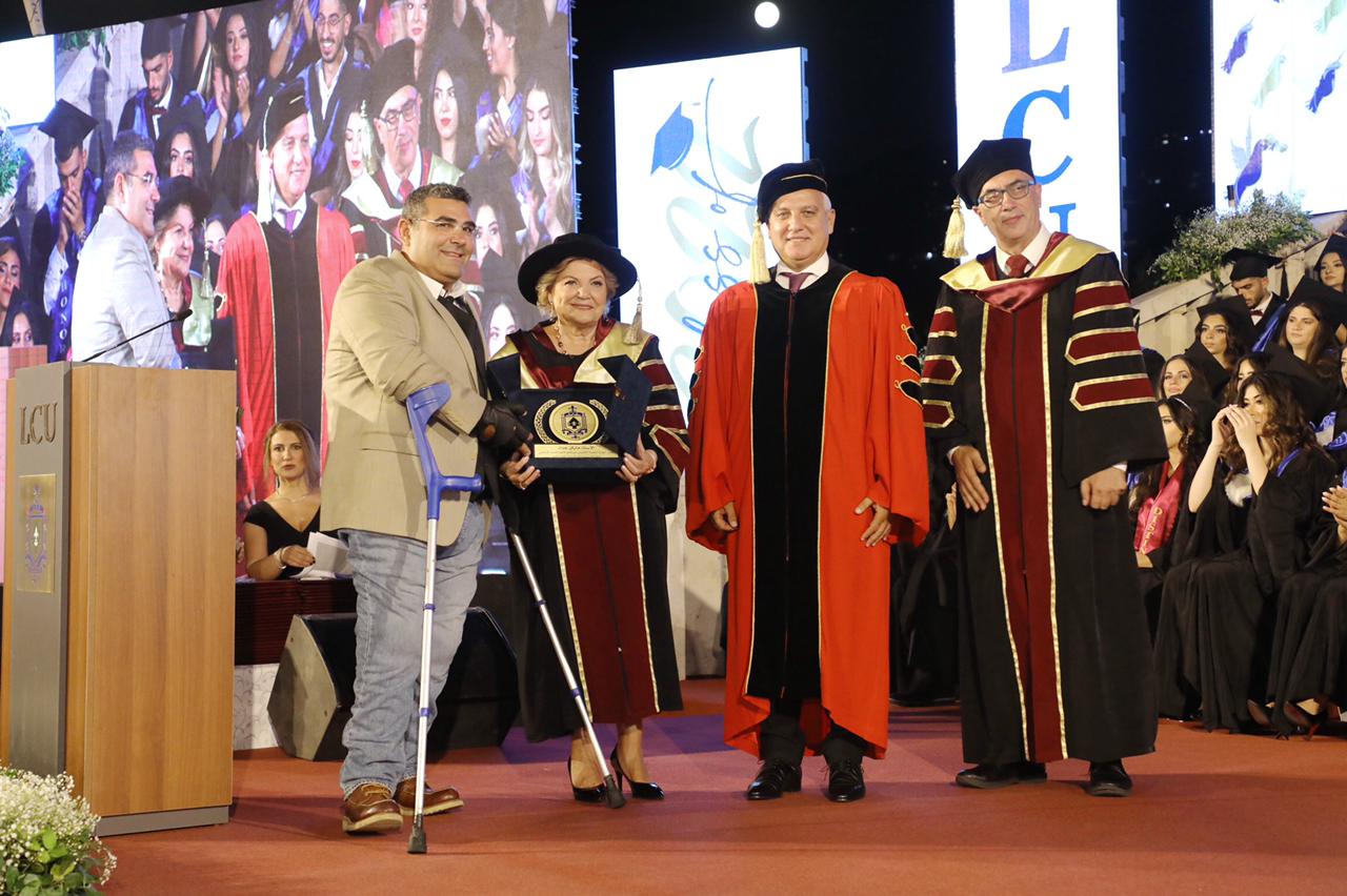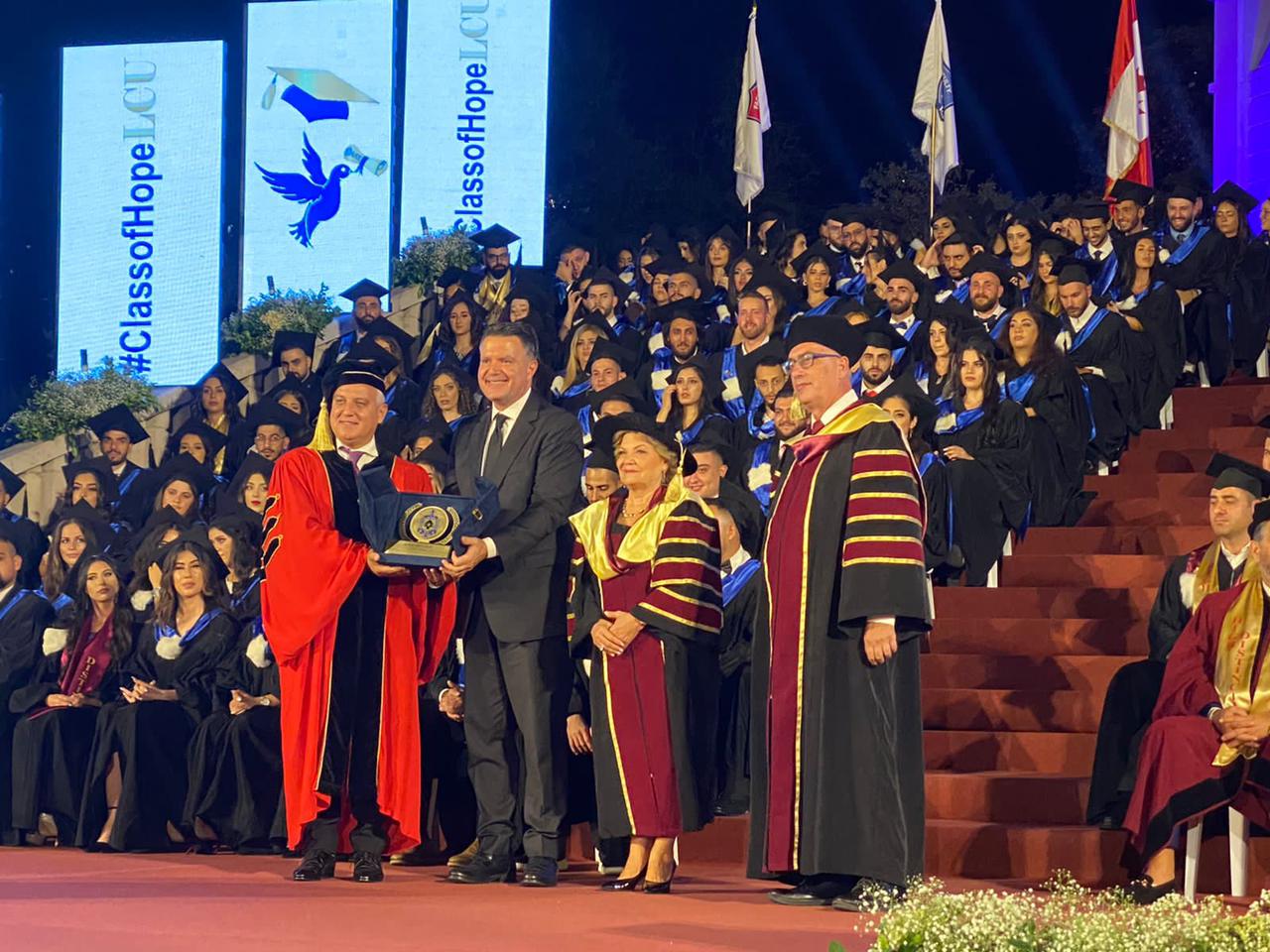وتسلّم درعا تكريميّا من رئيس الجامعة الدكتور روني أبي نخلة.