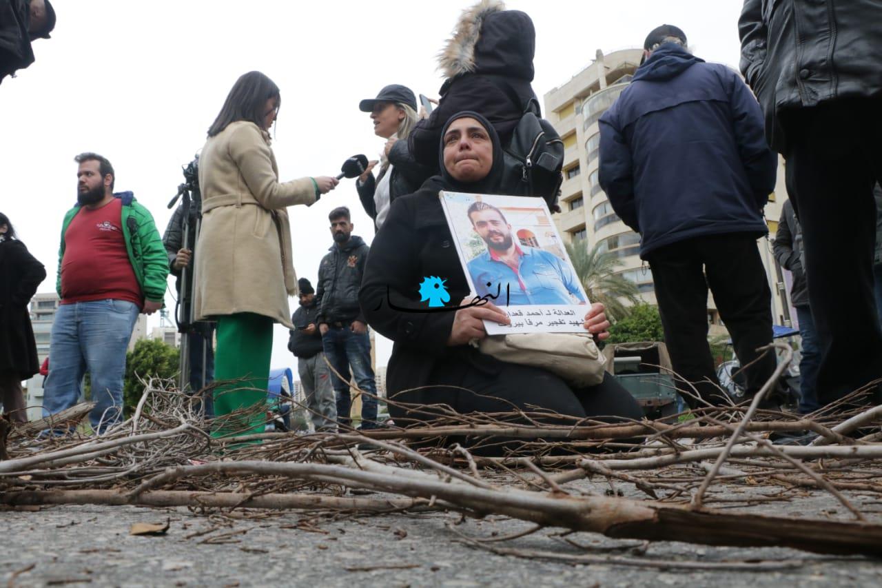 أهالي ضحايا انفجار المرفأ يفترشون الأرض في محيط فرع أمن الدولة في الرملة البيضاء (حسن عسل).