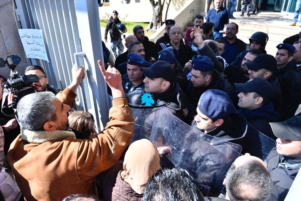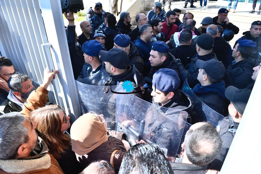 وحصل تدافع بين الأساتذة والقوى الأمنية امام مدخل الوزارة، بعد محاولتهم اختراق الحاجز الأمني والدخول إلى حرم الوزارة.