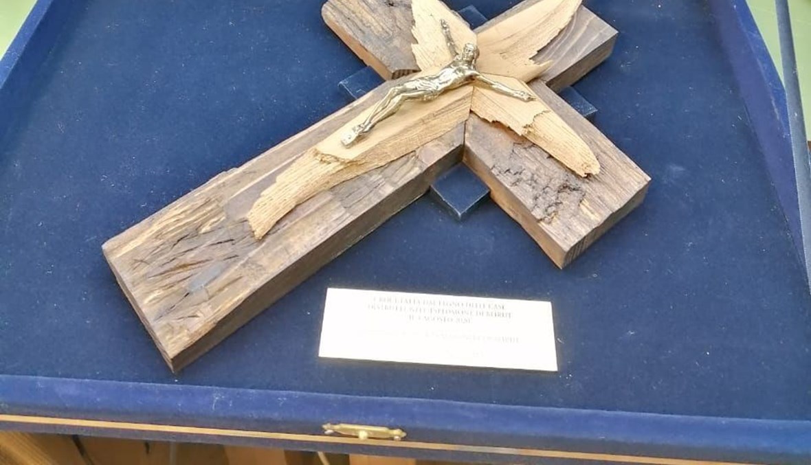 تسلم البابا فرنسيس امس صليباً مصنوعاً من اخشاب الابواب والنوافذ المحطمة في بيروت جراء انفجار الرابع من آب، صنع في ابرشية بيروت المارونية، وحمله اليه هدية الرئيس العام للرهبانية المارونية المريمية الاباتي بيار نجم المنتخب حديثاً والذي يزور الفاتيكان للمرة الاولى بعد انتخابه. وقد رافقه المدبر العام الاب دومينيك العلم والوكيل العام لدى الكرسي الرسولي الاب شربل حداد، ووكيل دير مار انطونيوس الكبير الاب شربل فرح.