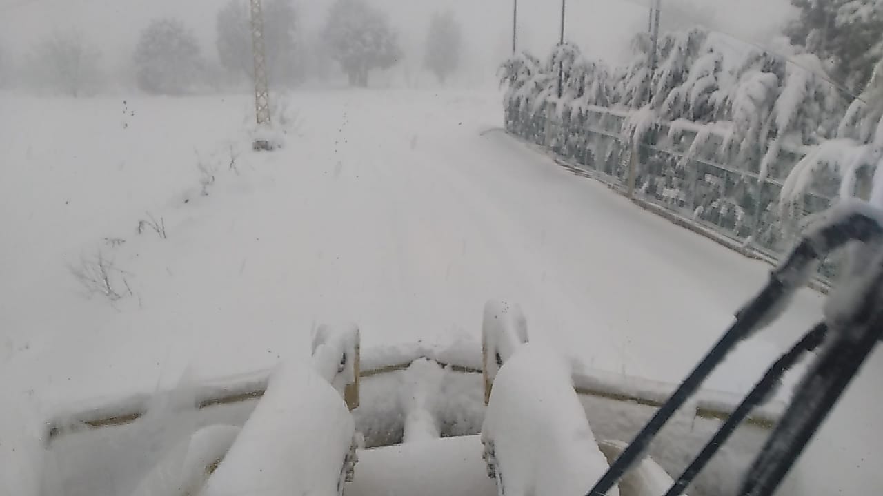 جرافات مراكز رفع الثلوج ناشطة منذ الليل في عملها لتبقي الطرقات الرئيسية مفتوحة، لكن غزارة الثلوج المتساقطة وسرعة الرياح تعيق عملها.