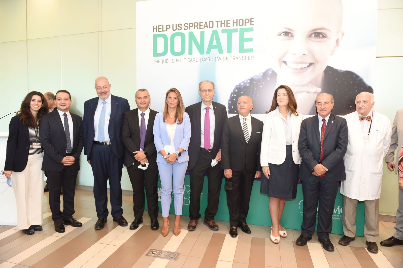 تقديم تبرّع لصندوق دعم مرضى السرطان في المركز الطبي في الجامعة الأميركية.