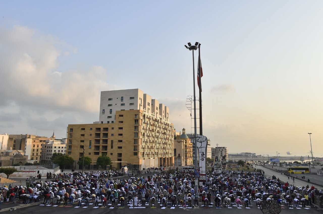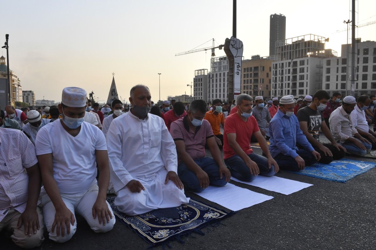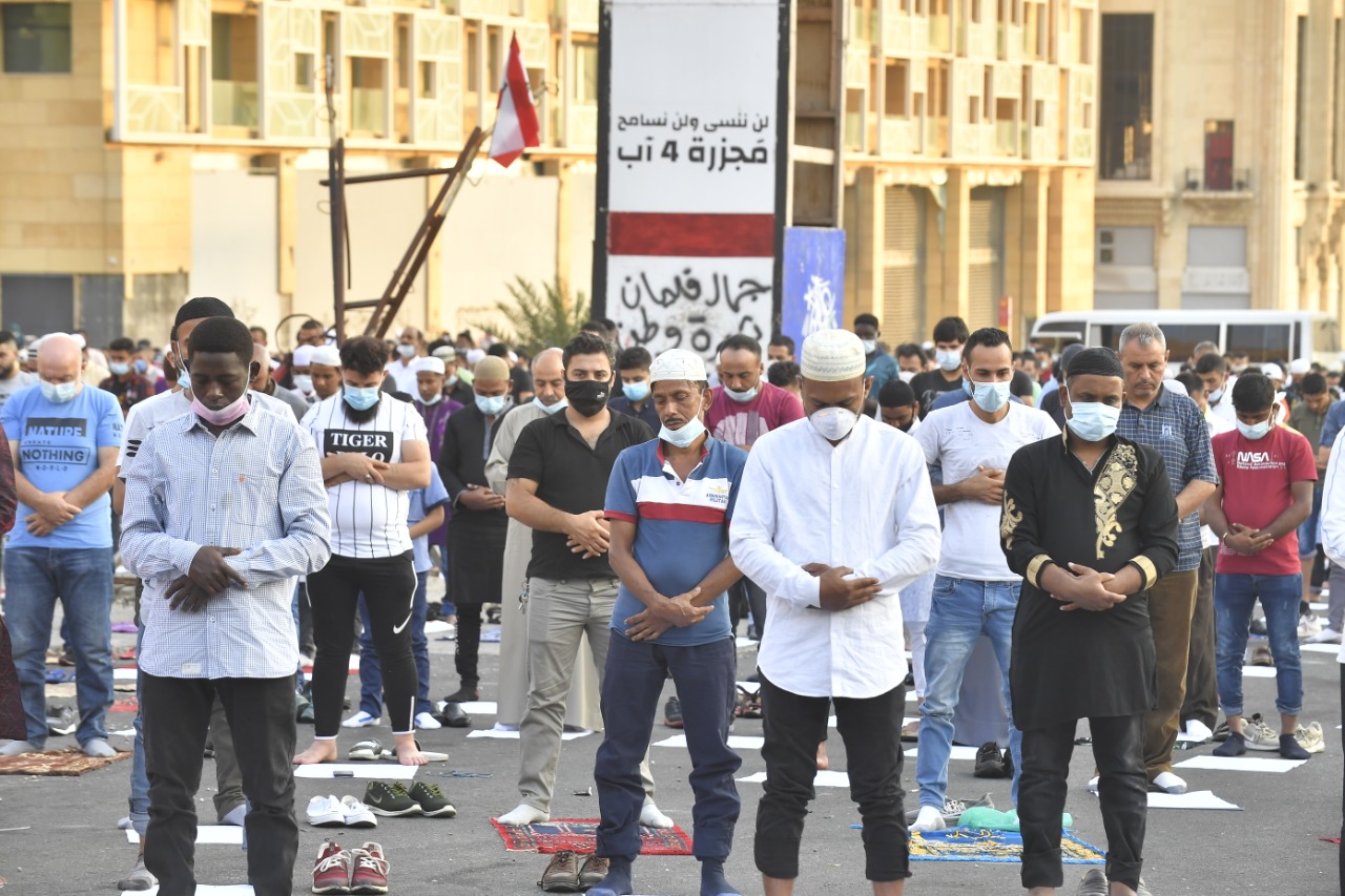في ساحة الشهداء في بيروت، اصطفّ حشد من المسلمين، مع احترام لقواعد التباعد الاجتماعي، لتأدية صلاة العيد، في ساعات الصباح الأولى، بإمامة أمين فتوى الجمهورية اللبنانية الشيخ أمين الكردي، بدلاً من المفتي عبداللطيف المتواجد خارج البلاد.
