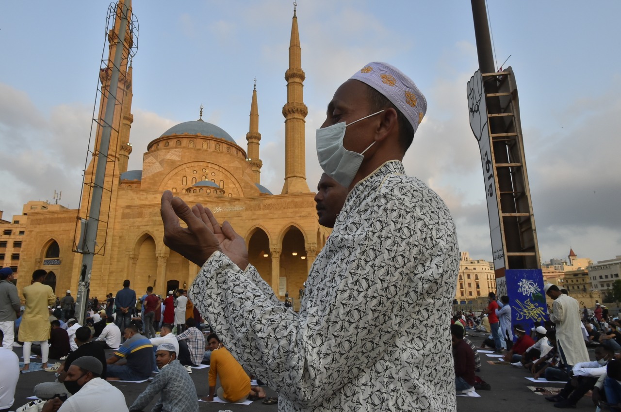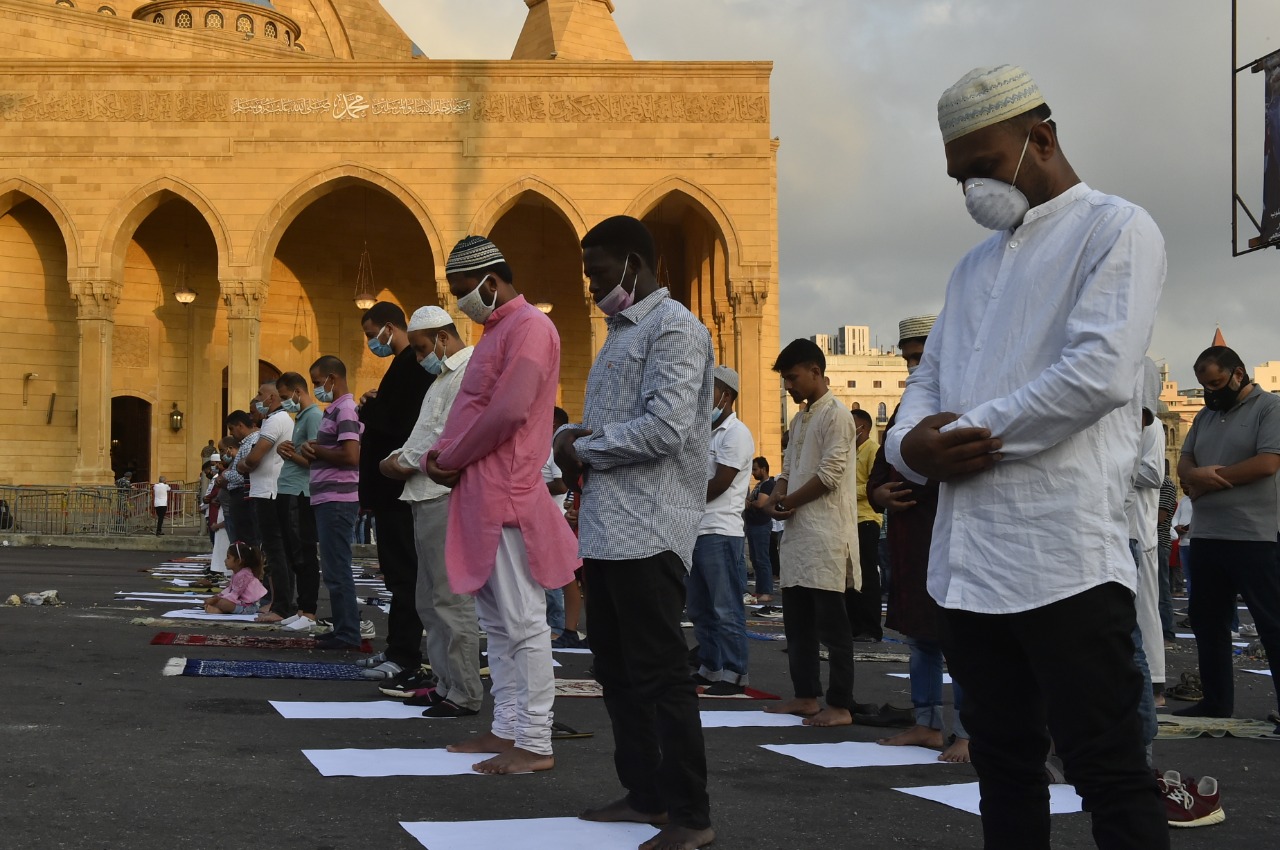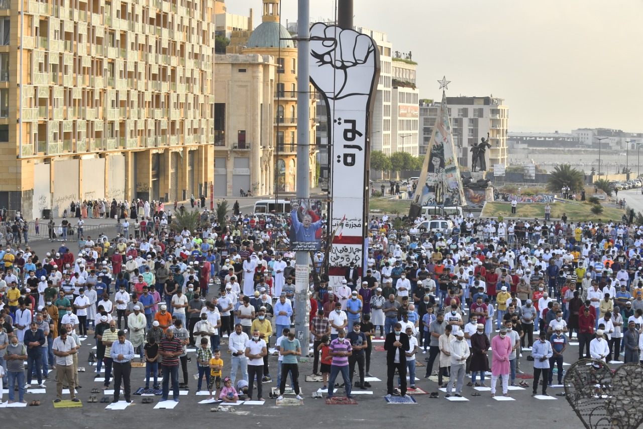 في ساحة الشهداء في بيروت، اصطفّ حشد من المسلمين، مع احترام لقواعد التباعد الاجتماعي، لتأدية صلاة العيد، في ساعات الصباح الأولى، بإمامة أمين فتوى الجمهورية اللبنانية الشيخ أمين الكردي، بدلاً من المفتي عبداللطيف المتواجد خارج البلاد.