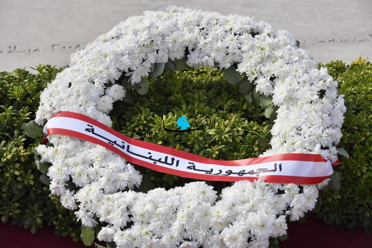 إكليل من الزهر على ضريح رجل الاستقلال عبدالحميد كرامي باسم الجمهورية اللبنانية