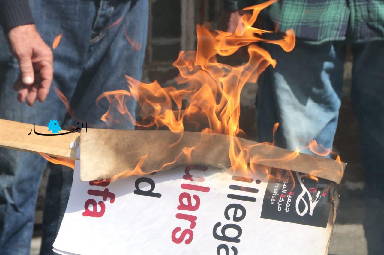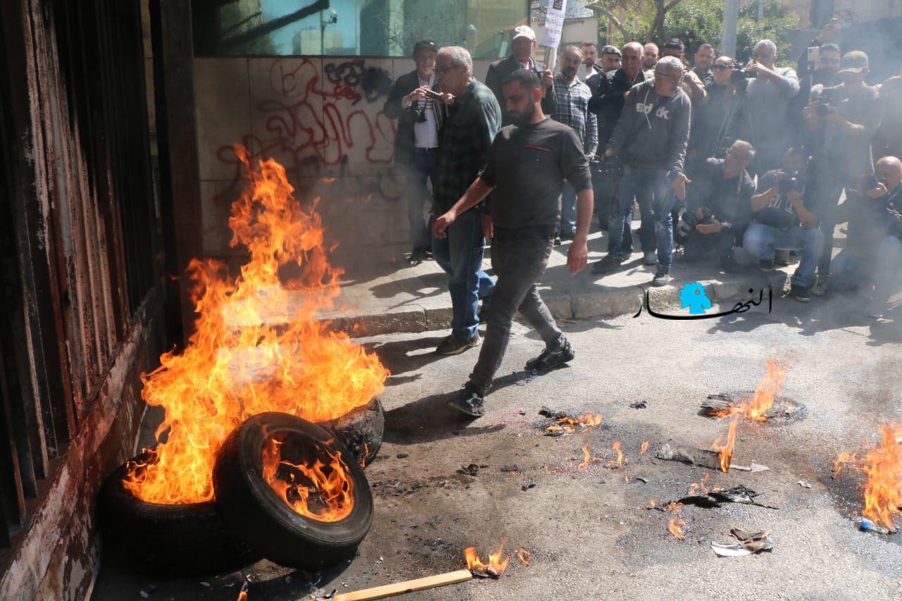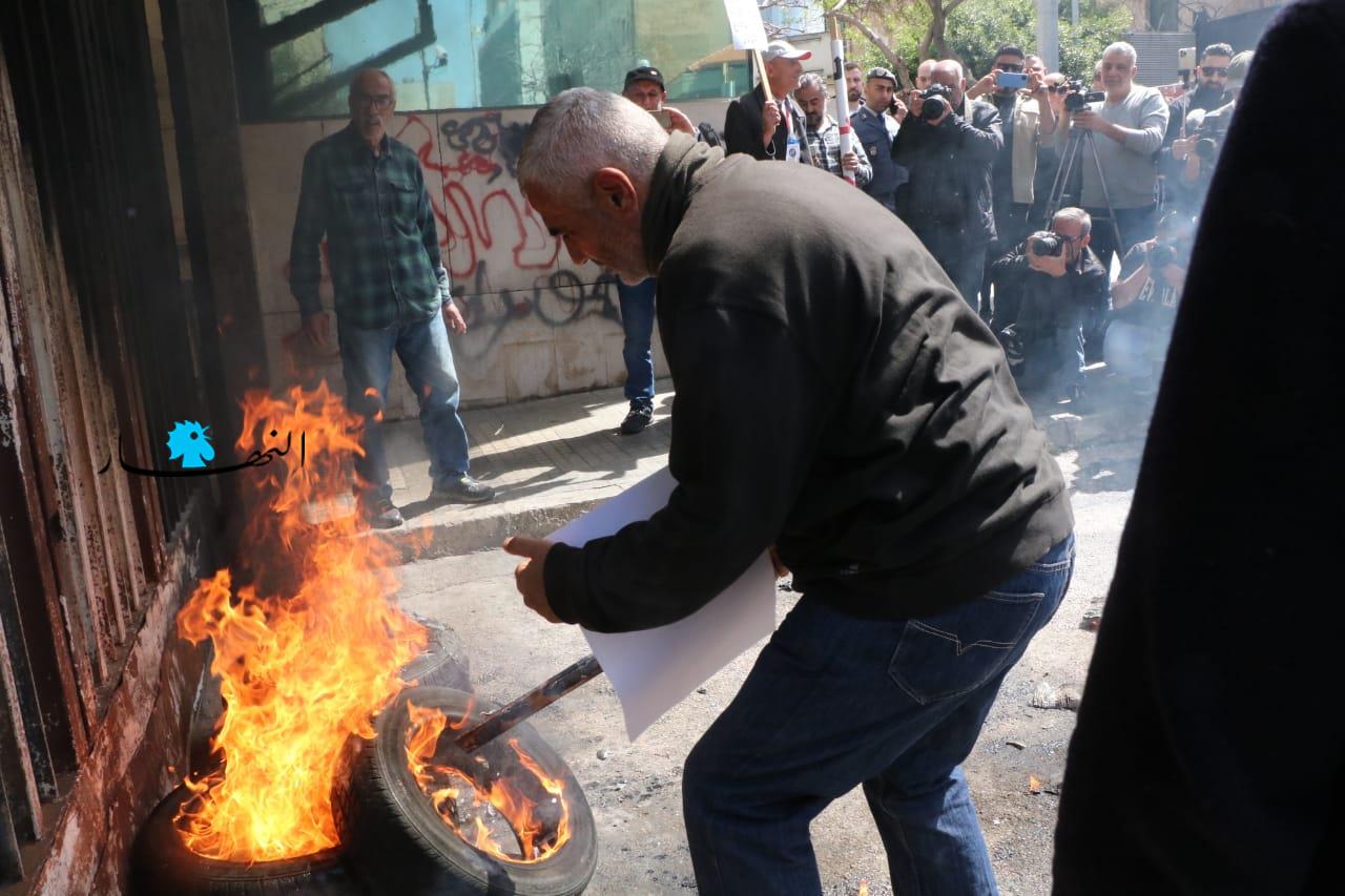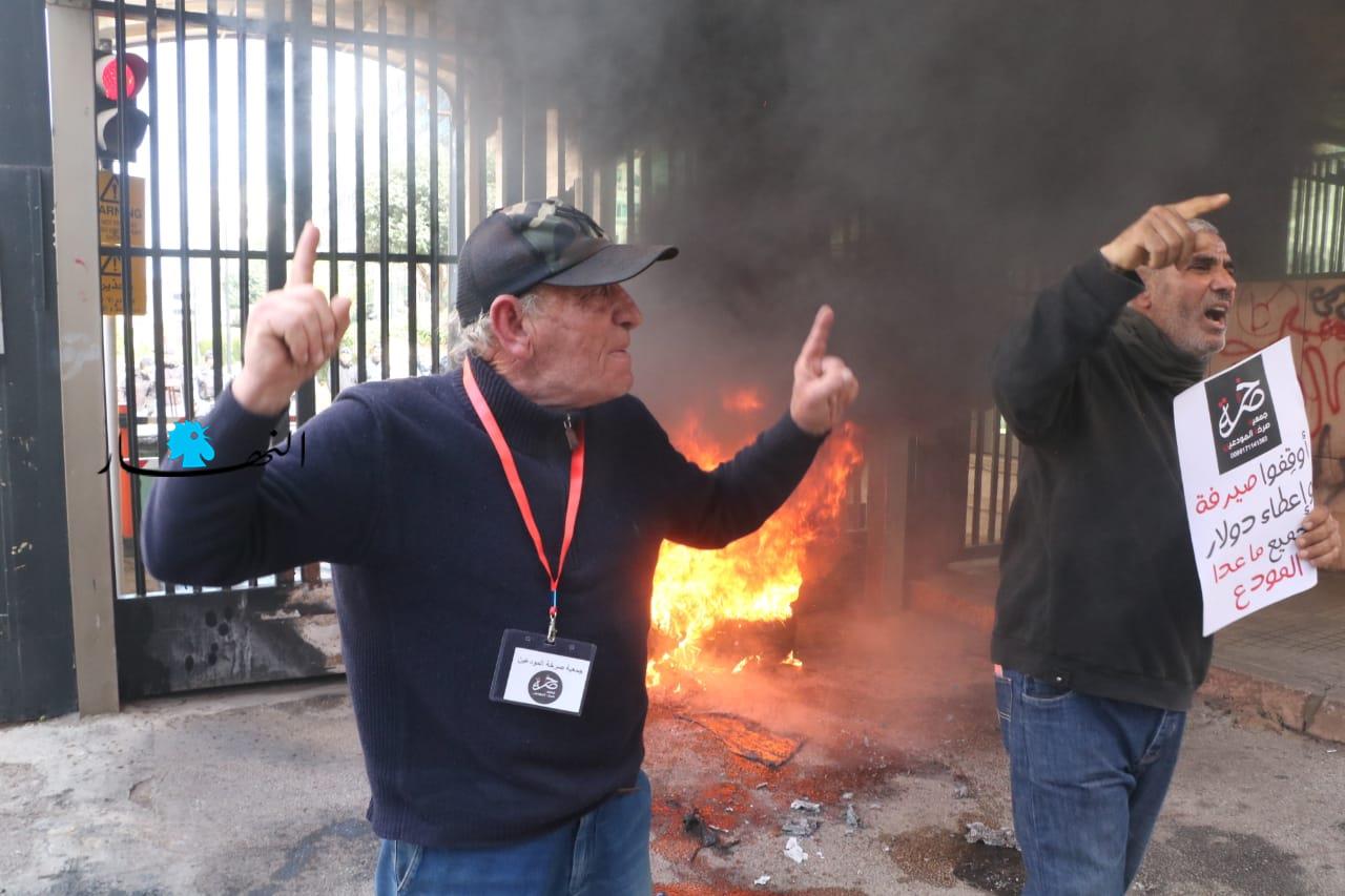 قطع الطريق أمام مصرف لبنان بالإطارات المشتعلة (حسن عسل).