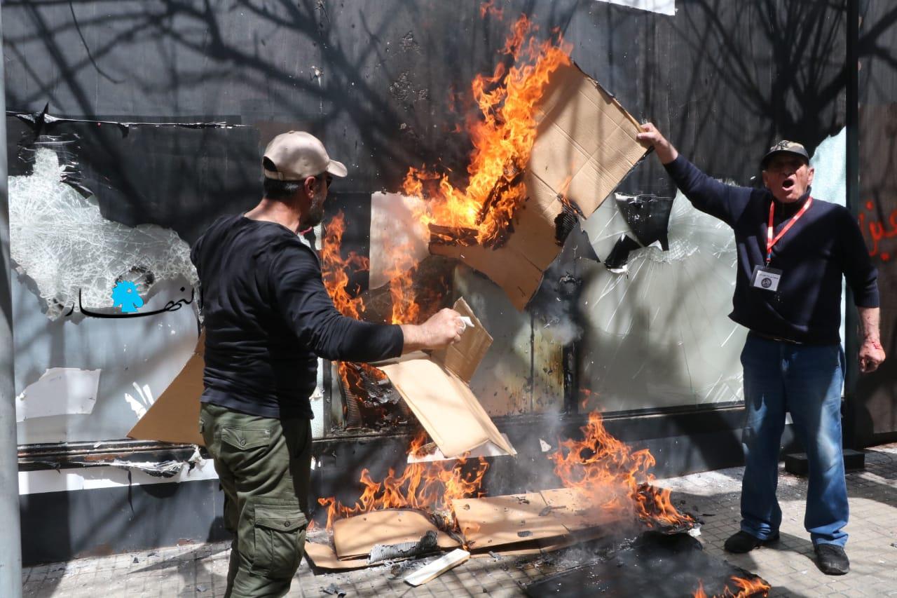 كما حاول المعتصمون تكسير واجهات عدد من المصارف في المكان، قبل أن تتدخّل عناصر مكافحة الشغب.