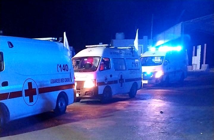 سيارات الصليب الأحمر تنقل الضحايا إلى الداخل اللبناني.
