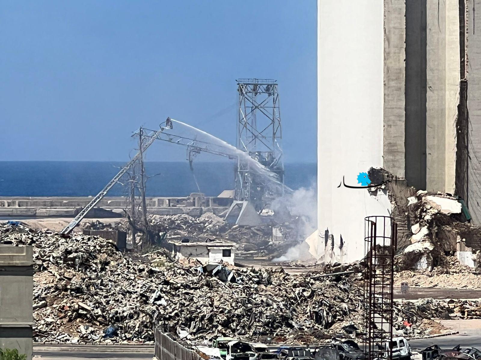 بدأت آليات فوج إطفاء بيروت بعمليات إخماد الحريق المندلع في أهراء المرفأ منذ أسابيع، والعمل على تبريده، بعد انهيار الجزء الشمالي من صوامع القمح صباح الثلثاء.