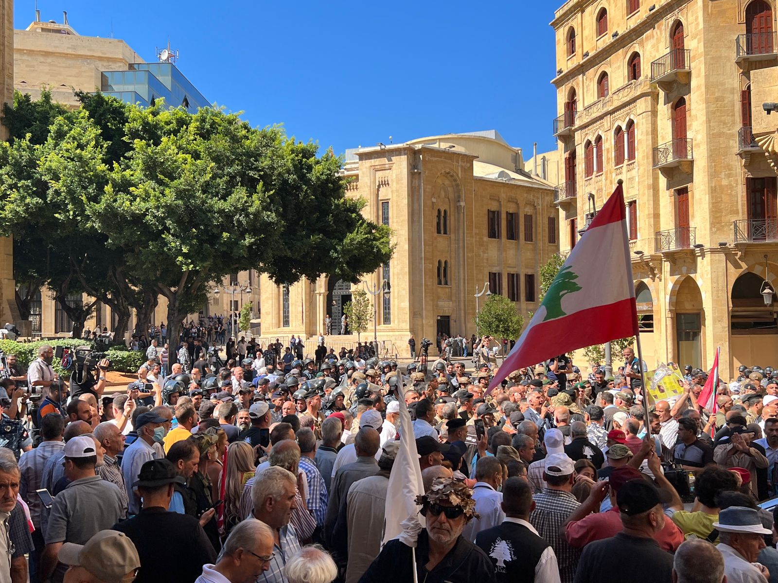 يحاول بعض من العسكريين المتقاعدين في هذه الأثناء الدخول إلى مجلس النواب بالقوّة وسط انتشار أمني كثيف.