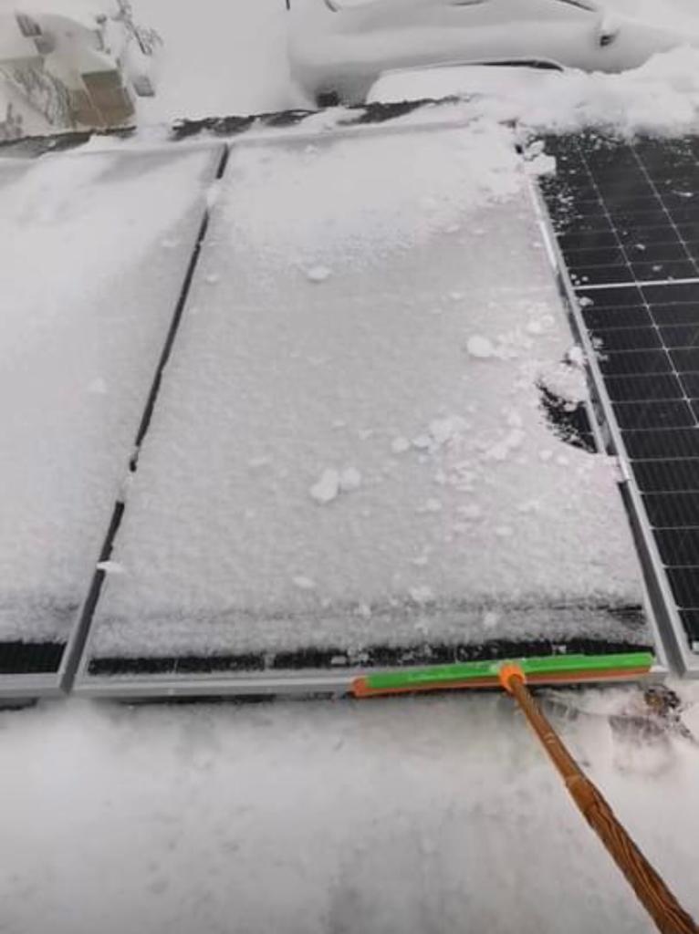 واستفادوا من انفراجات الصباح لجرف الثلج عن ألواح الطاقة الشمسية.