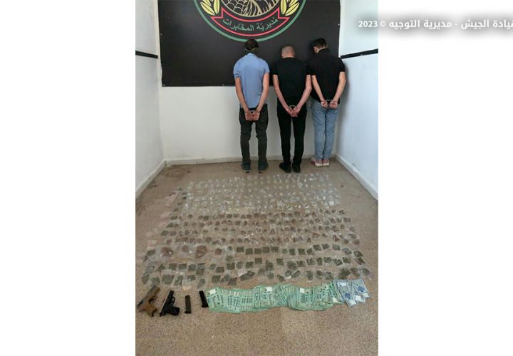 أعلنت قيادة الجيش- مديرية التوجيه أنه "بعد عملية رصد وتعقب لمروجي المخدرات، أوقفت دورية من مديرية المخابرات بتاريخ 9/6/2023 في منطقة حي السلم – الضاحية الجنوبية السوريَّين (ع.م.) و(ع.ك.) لإقدامهما على ترويج المخدرات، وضبطت في حوزتهما كمية كبيرة من ظروف السيلفيا وحشيشة الكيف والكوكايين والباز كوكايين وعدداً من حبات الكبتاغون، إضافة إلى مسدسين حربيين ومبلغ مالي".