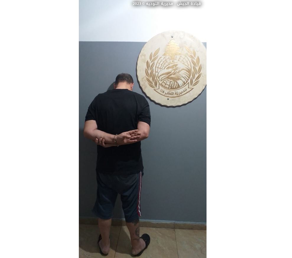 أعلنت قيادة الجيش ـــ مديرية التوجيه، في بيان، أنّ "دورية من مديرية المخابرات أوقفت السوري (أ.ع.) في بيروت لانتمائه إلى إحدى المجموعات المسلّحة في سوريا وقتاله إلى جانبها".