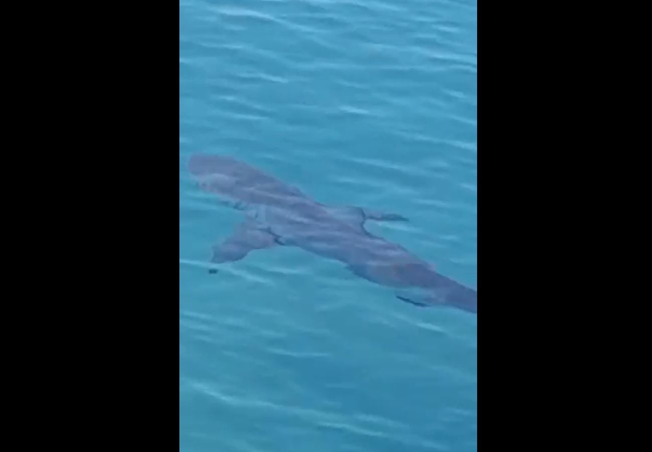 لقطة من الفيديو المتداوَل لسمكة القرش في بحر الصرفند.
