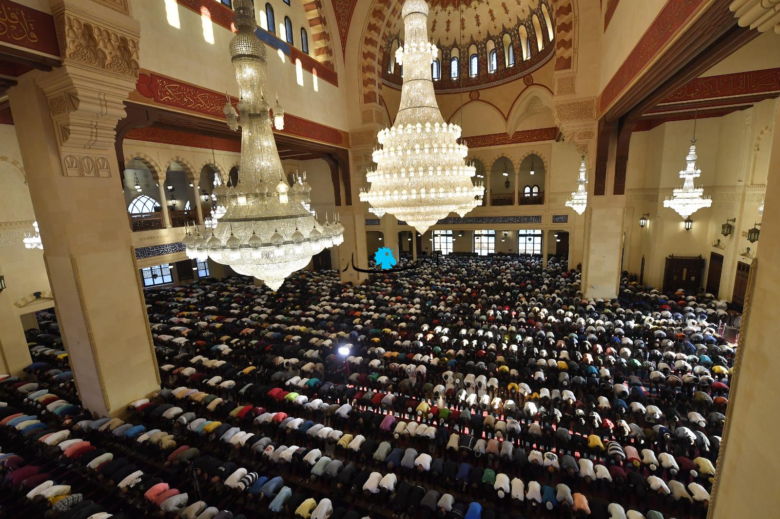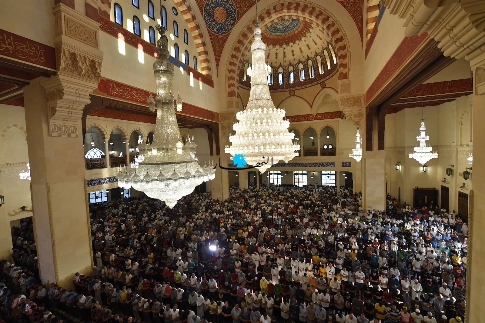 حضر حشد من المسلمين إلى مسجد محمد الأمين، وسط بيروت لأداء صلاة عيد الأضحى، في ساعات الصباح الأولى.