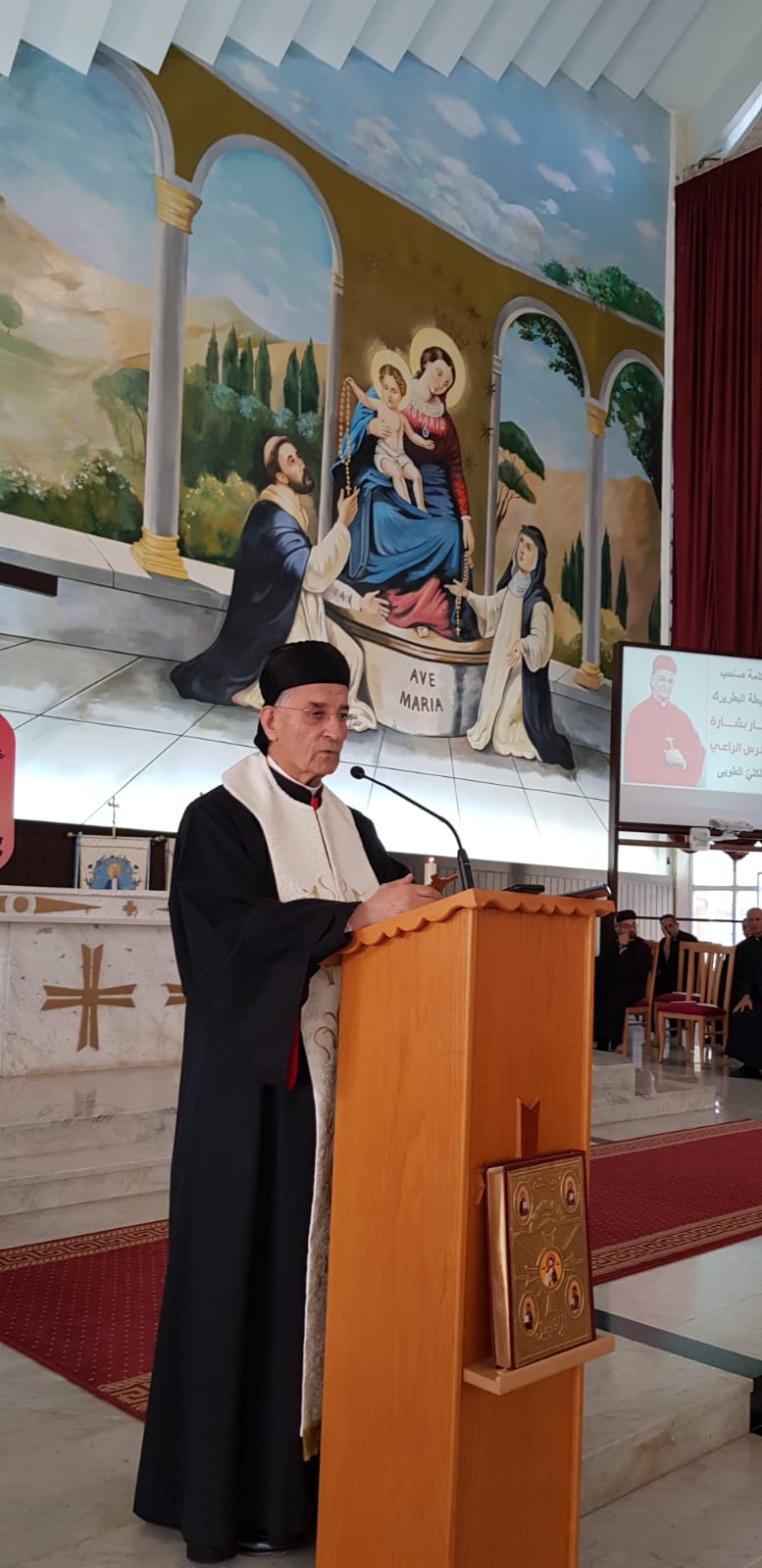 البطريرك مار بشارة بطرس الراعي في كنيسة سيدة الغسّالة (ميشال حلّاق).