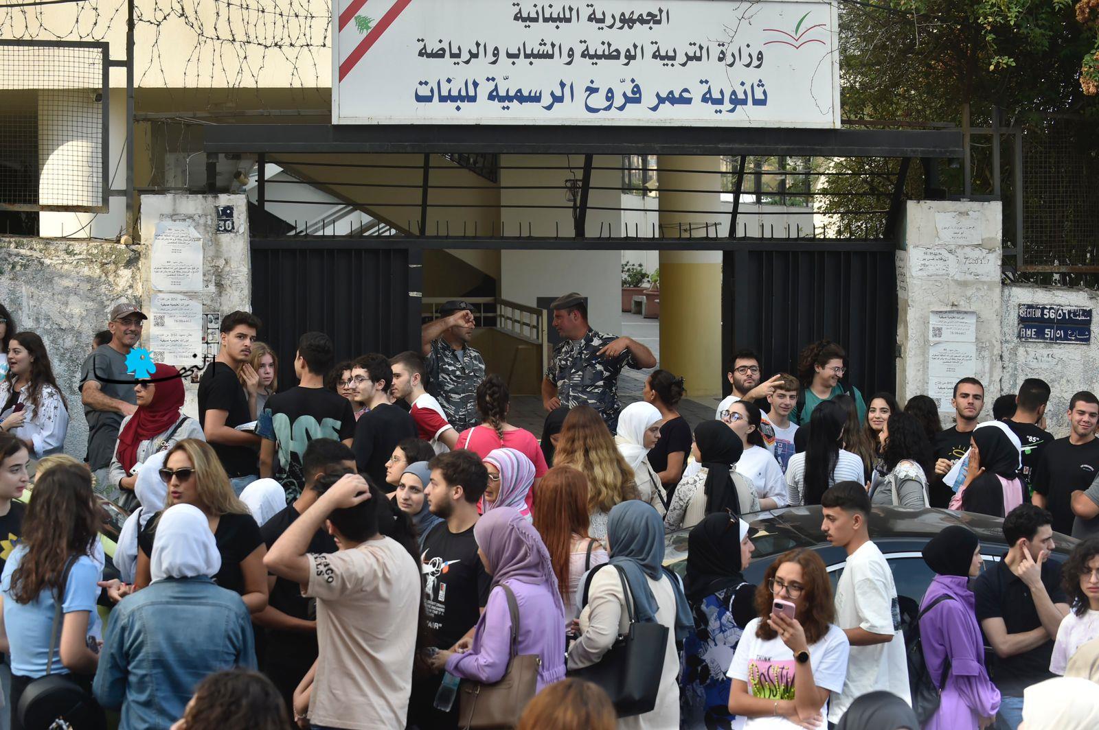 عدسة "النهار" عاينت تجمّع الطلاب أمام ثانوية عمر فروخ الرسمية للبنات، في بيروت، قبيل دخولهم إلى مركز الامتحانات، في حين تشهد المراكز تدابير أمنيّة.