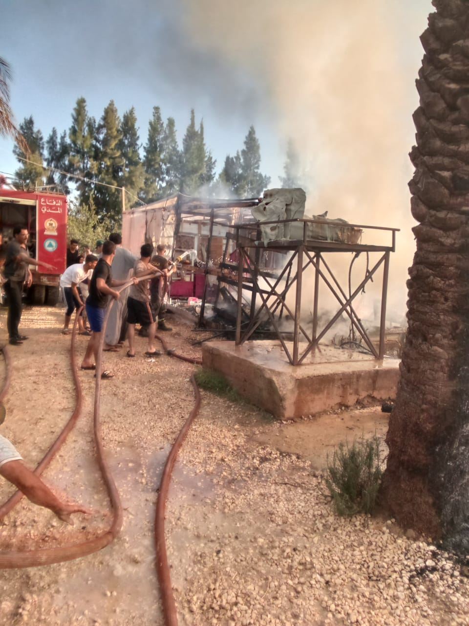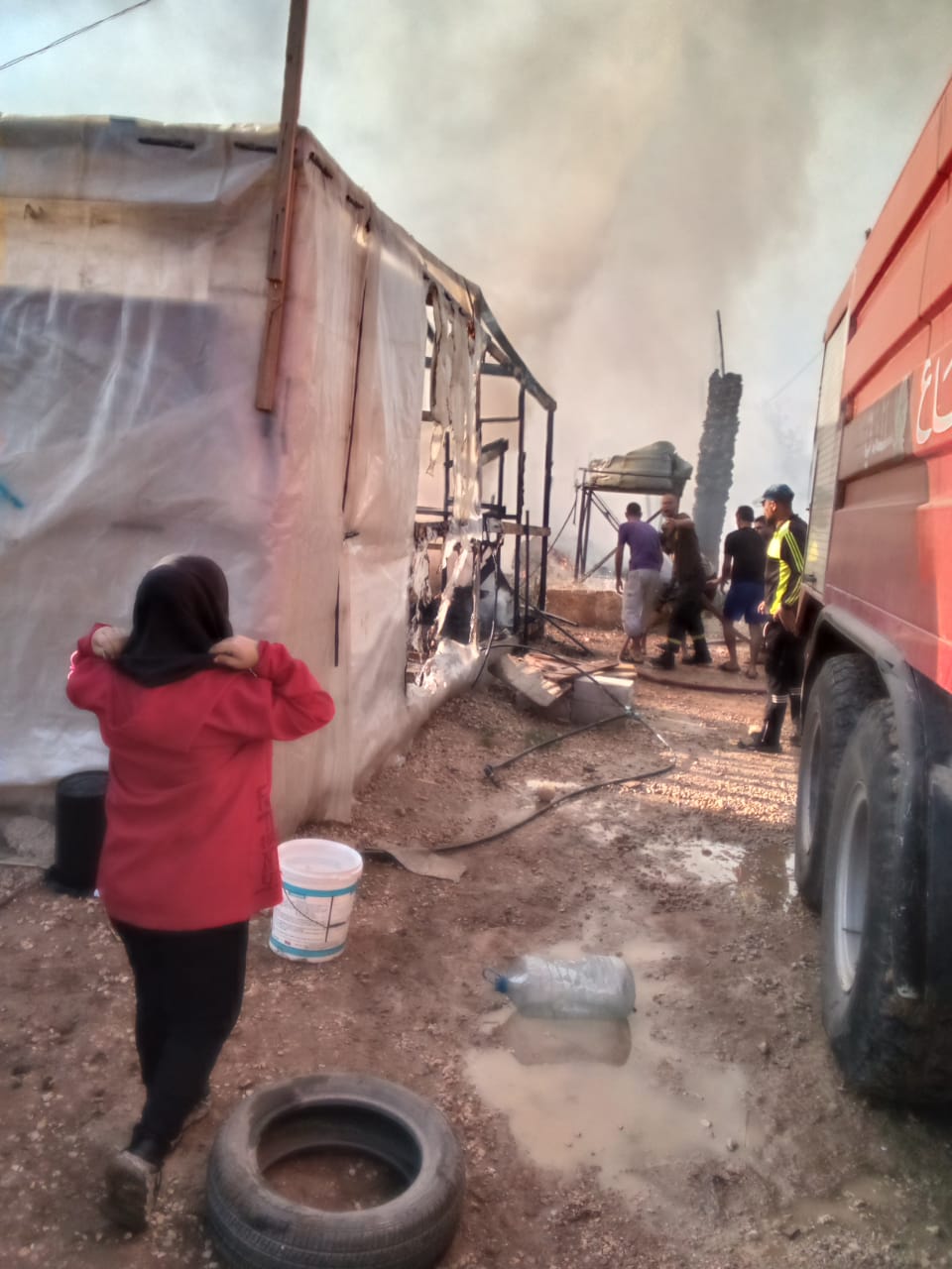 حريق في مخيم للنازحين في بحنين.
