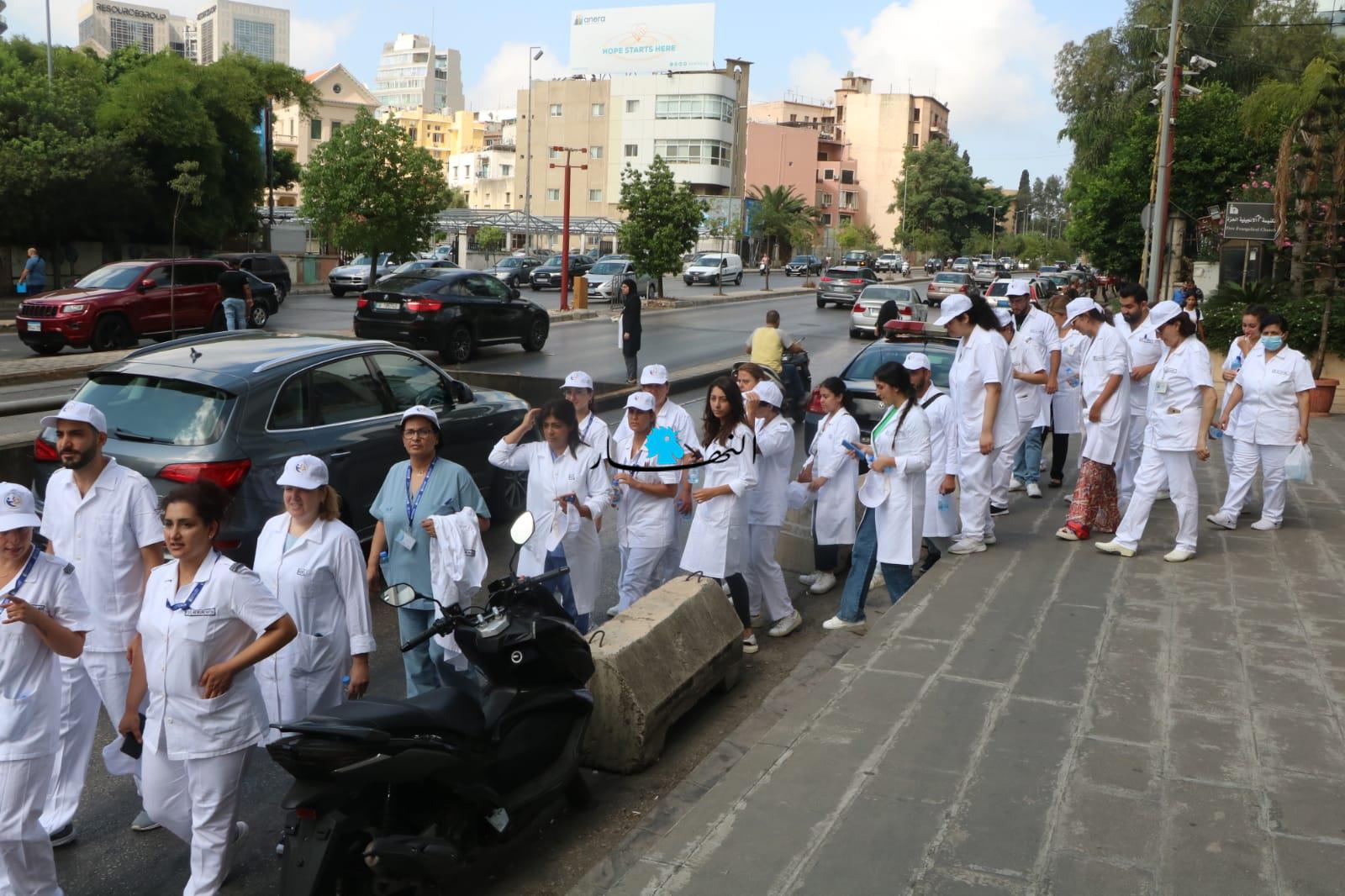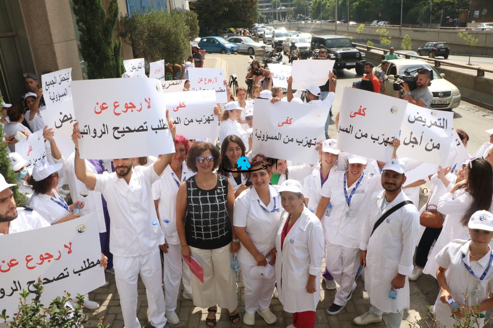 نفّذت نقابة الممرضات والممرضين في لبنان، اعتصاماً قرب مستديرة العدلية– مقابل بيت المحامي، رفضاً لموقف نقابة المستشفيات لعدم الموافقة على تصحيح أجورهم.
