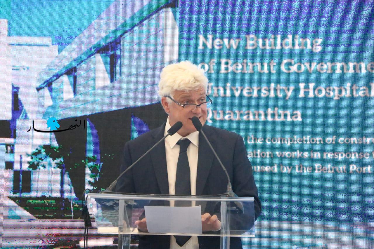 كما قال بيجبيدر: "اليوم، نؤكد من جديد تضامننا من خلال العمل. هذا المستشفى الحكومي الجامعي في الكرنتينا كان ملجأ للسكان الضعفاء في لبنان، خصوصاً منهم الأطفال وحديثي الولادة. بالتعاون مع وزارة الصحة العامة وإدارة المستشفيات وشركائنا الكرام والمتبرعين، بما في ذلك فرنسا من خلال الوكالة الفرنسية للتنمية، وأسامي- ASSAMEH Birth & Beyond- وآل بطرس وأوستراليا وكوريا وقبرص واليابان وآخرين، قمنا بافتتاح هذا المبنى الجديد لتوفير الخدمات الرعائية لمن هم في أمسّ الحاجة إليها، خصوصاً في هذه الفترة الصعبة التي يمر بها لبنان".