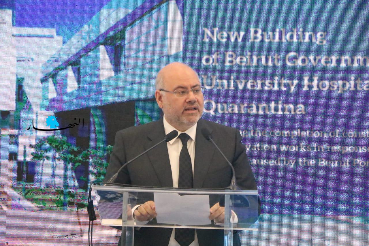 وتابع: "إن هذه المؤسسة تشكل إلى جانب المستشفيات الحكومية الأخرى جزءاً مهماً من استراتيجية وزارة الصحة العامة لإعادة بناء قطاع استشفائي عام، يكون جزءاً من شبكة الحماية الاجتماعية، ويقوم بخدمة مجتمعه وخاصة في الأوقات الصعبة، أوقات الأزمات والأوبئة، قطاع يتحمل مسؤولياته في مسيرة هذا المجتمع نحو التعافي، ورحلة هذه الدولة نحو استعادة ثقة مجتمعها بها"، لافتاً إلى أن "هذا المستشفى قد مر كما يمر هذا الوطن، بأزمات قاسية لكنه نهض من جديد بهمة العاملين فيه ودعم ومساندة الشركاء والأصدقاء. ونحن هنا نتقدم بالشكر والتقدير، وخاصة لشركائنا الدوليين على دعمهم لنا في وقت الضيق، ومبادرتهم هذه تجسد شعورهم معنا بوحدة الحال، وتضامنهم معنا في أشد الأوقات ظلمة. وهذا التضامن يعكس الرابط الإنساني الذي يجمعنا ويؤكد من جديد قدرة الإنسان بمعاونة أخيه الإنسان، على تجاوز الشدائد. ولعل هذا الدعم الذي حصل عليه لبنان ، هو أيضاً اعتراف دولي بما قدمه وما زال يقدمه من احتضان إنساني للنازحين إليه في السنوات والعقود الماضية، بالرغم مما شكله ويشكله ذلك من عبء كبير، استهلك ويستهلك الكثير من المقدرات في وقت شحت فيه الموارد".