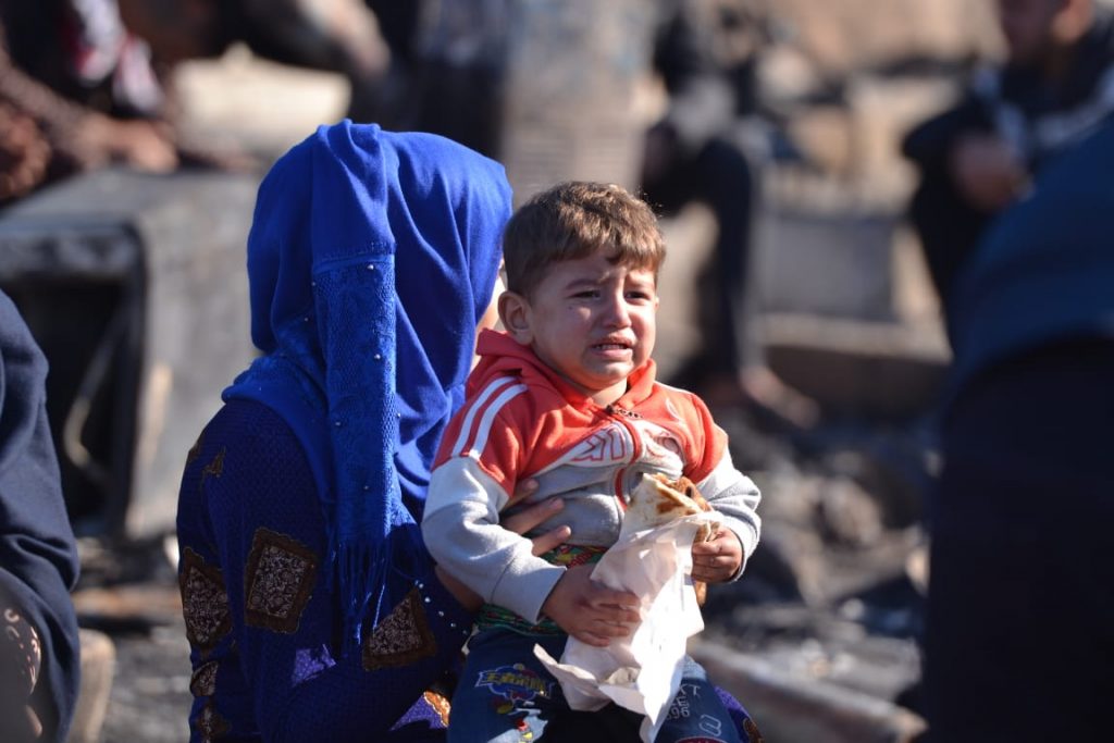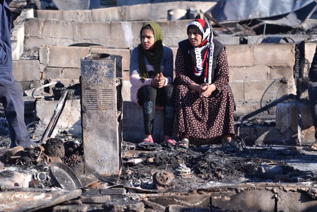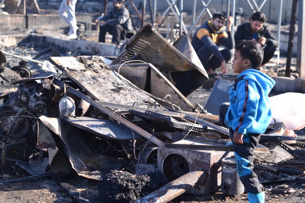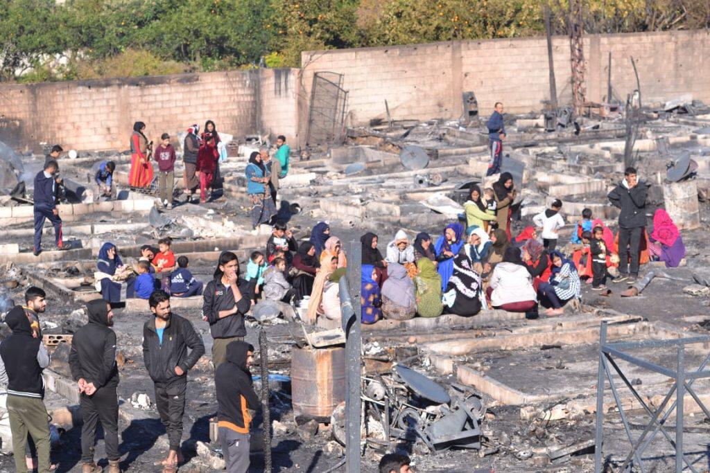 كما "طالب المؤسسات الدولية بالاستجابة السريعة لتأمين المسكن للنازحين المتضررين حتى إعادة بناء المخيم".