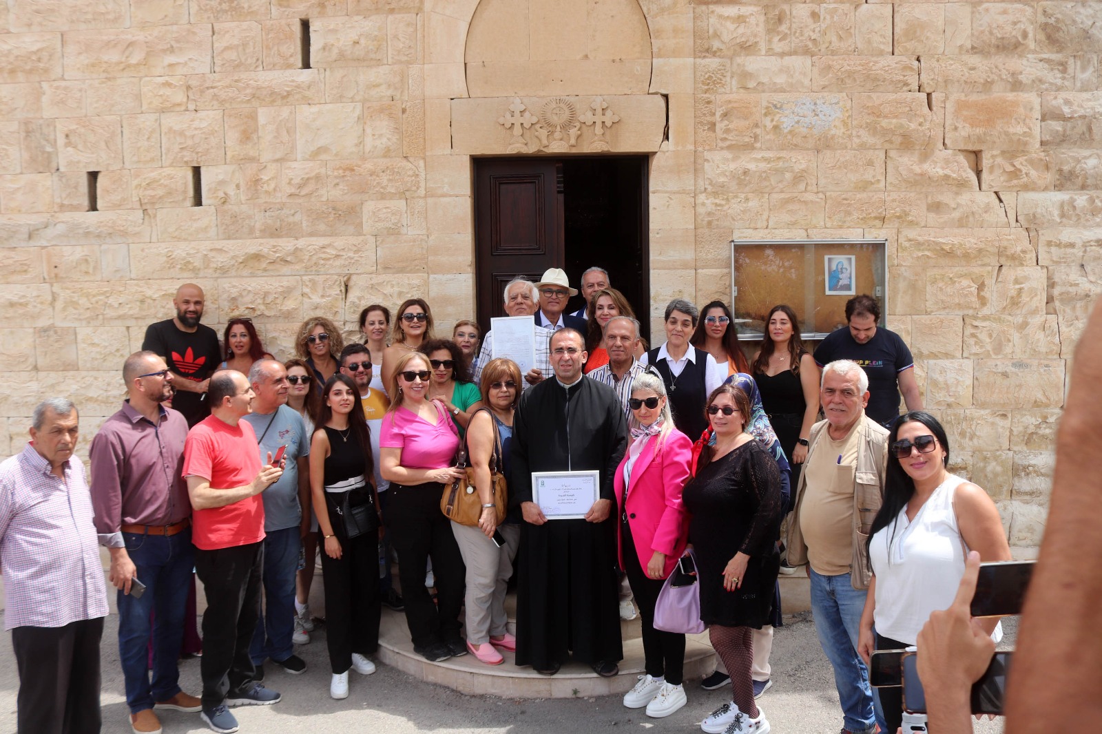 وتحدّث المونسنيور الأسمر وعرض نبذة تاريخية عن الكنيسة، فقال: "تمّ بناؤها بحسب ما خُطّ على عتبتها في العام 1885، وكان زارها المطران يوحنا الحلو الذي كان نائباً بطريركياً على أبرشية صور وصيدا سابقاً سنة 1805، ولكن الوجود المسيحيّ في هذه المنطقة يعود إلى سنة 1732 وما قبل، لأنّه وبحسب سجلّات المدرسة المارونية في روما سنة 1732، هناك ثلاثة طلّاب أُرسلوا من هذه البلدة وهم نقولا شلهوب، ومخايل شلهوب وبولس شلهوب المعوش. وبعدها طلب المجمع اللبنانيّ في عام 1736 أن تكون هناك كنائس في كلّ أقاليم الأبرشيات، خاصّة في أبرشيّة صور وصيدا".