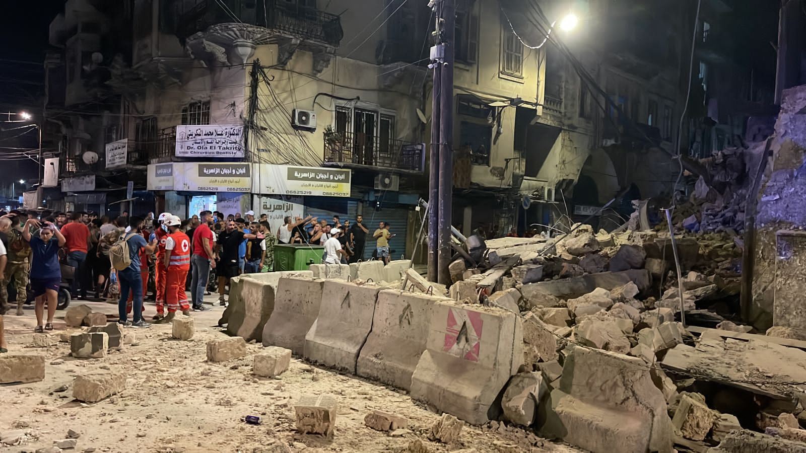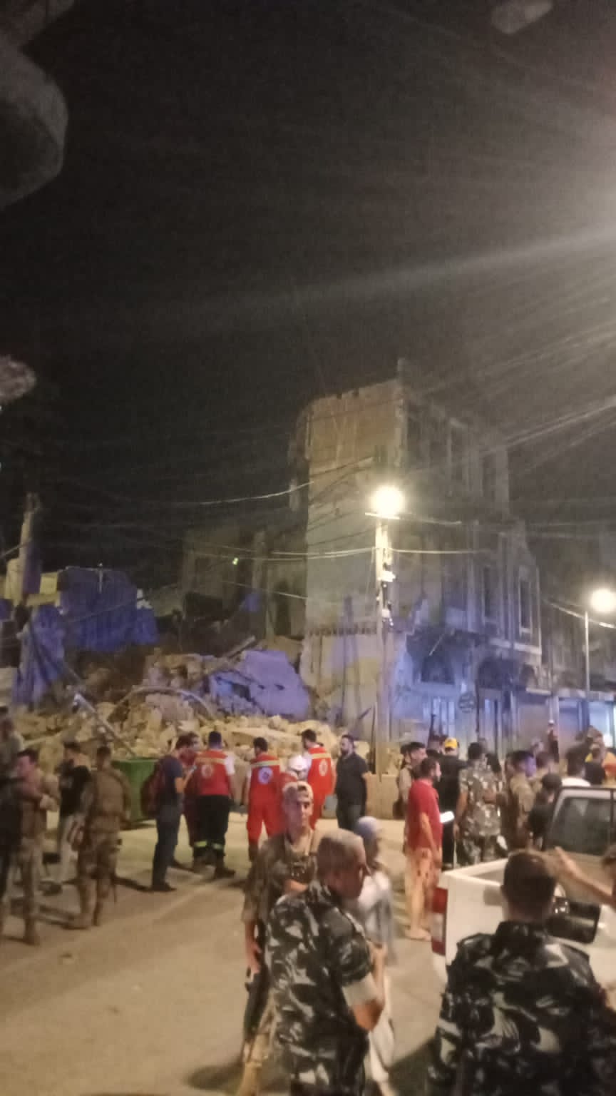 وانتشرت حجارة البناء المنهار والركام وغطى الغبار الشارع، وهرعت فرق الاسعاف في الصليب الأحمر اللبناني الذي أوفد 5 سيارات اسعاف بكامل أطقمها البشرية. وتجمع أهالي المنطقة في المكان، ولم يفد عن إصابات بشرية.