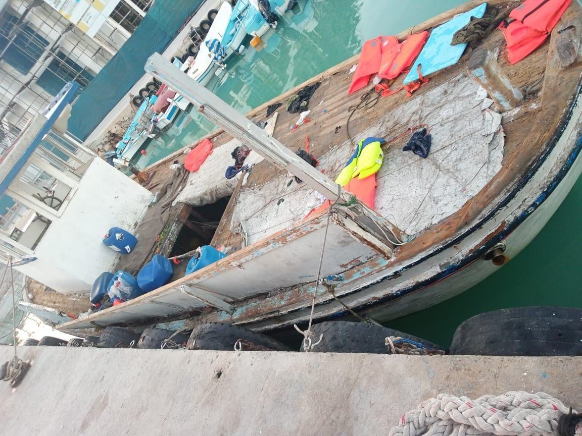 مركب الهجرة غير الشرعية بعد سحبه إلى أحد الموانئ القبرصية.