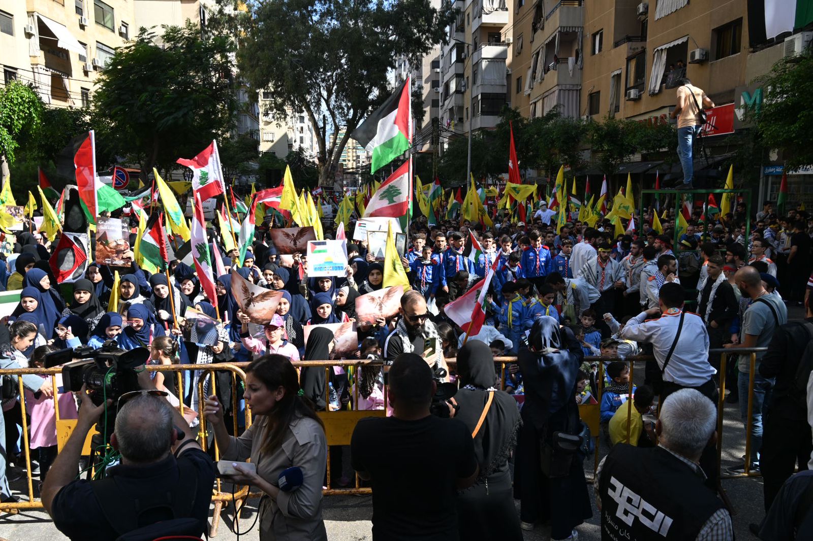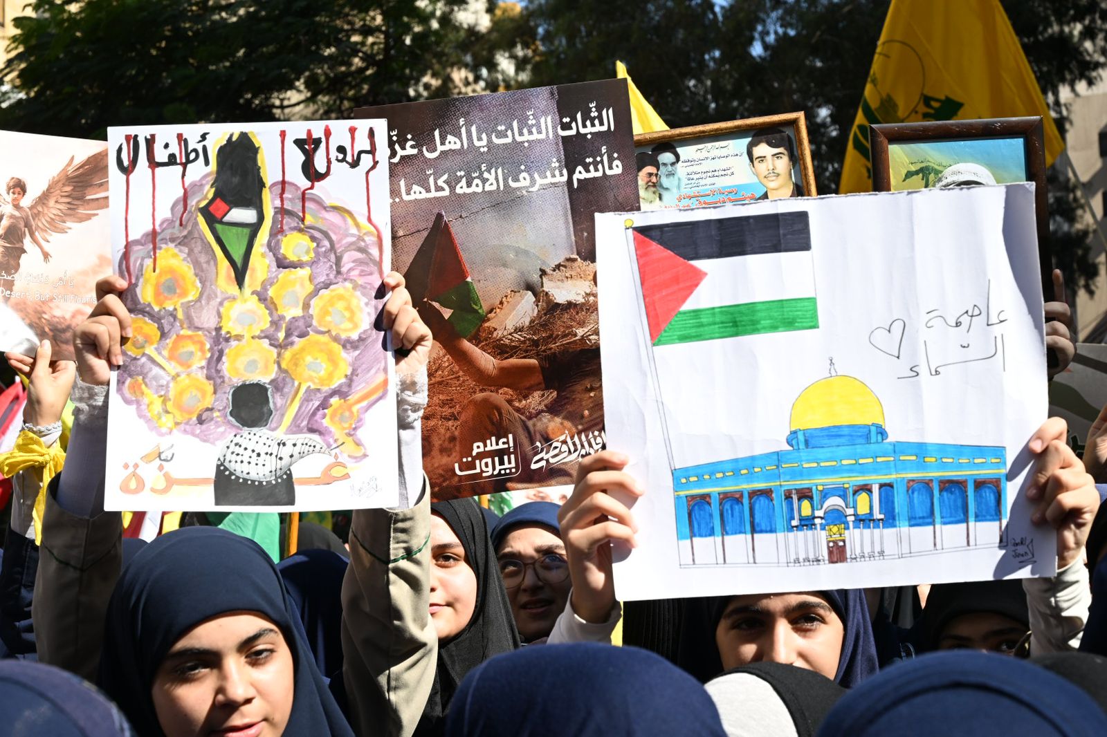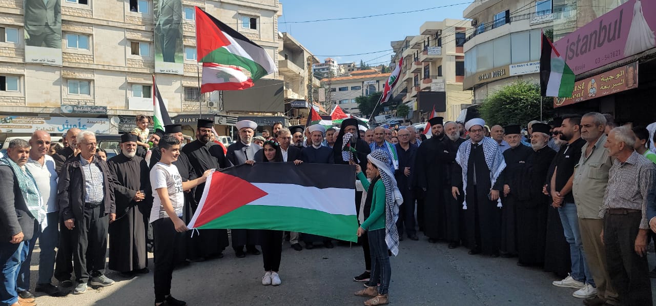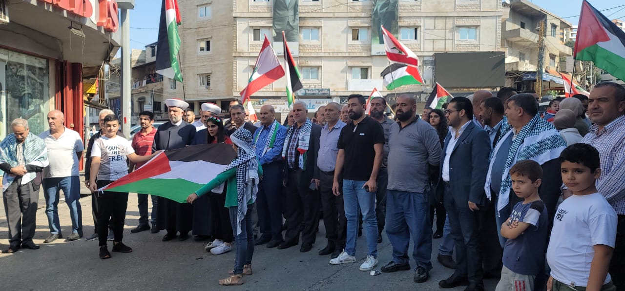 وبدعوة من "حزب الله" و"تضامناً مع غزة واستنكاراً للمجازر الصهيونية الوحشية بحق الاطفال والعدوان الإرهابي على المستشفى المعمداني"، تجمع عشرات الأشخاص في باحة الشورى في حارة حريك.