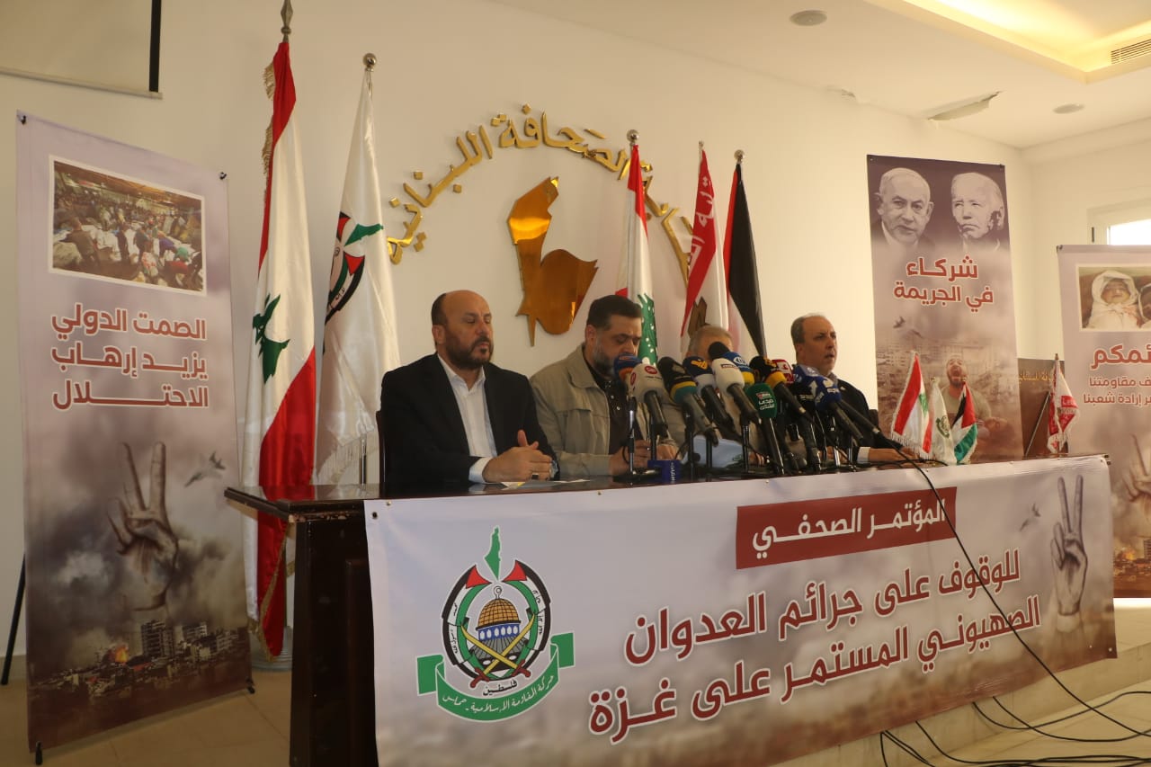 وعقدت حركة حماس مؤتمراً صحافياً في بيروت في نقابة الصحافة.