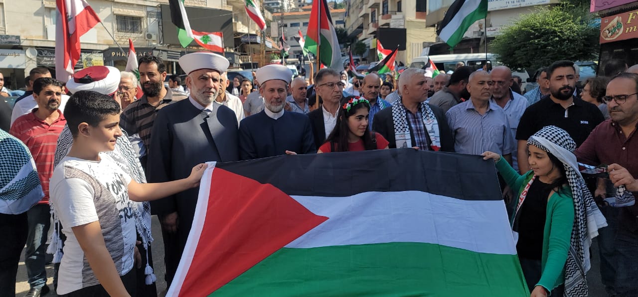 ووفقاً لمراسلة النهار، تنظّم الفصائل الفلسطينية في قضاء زحلة، تظاهرة قرب مسجد تعلبايا.