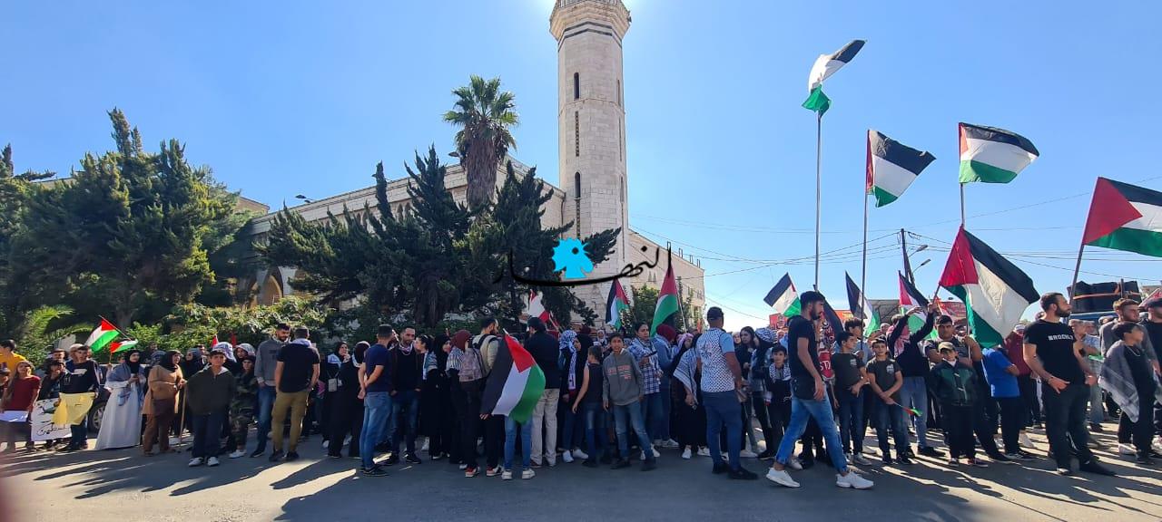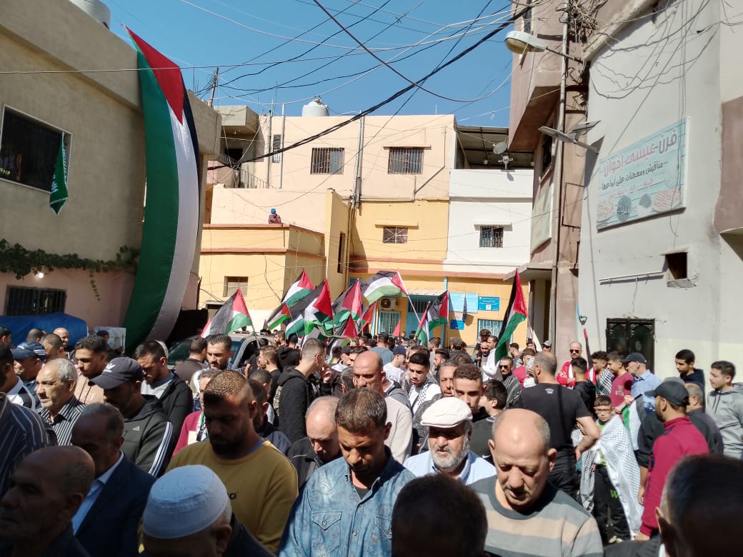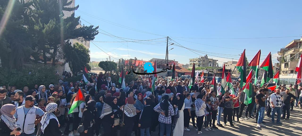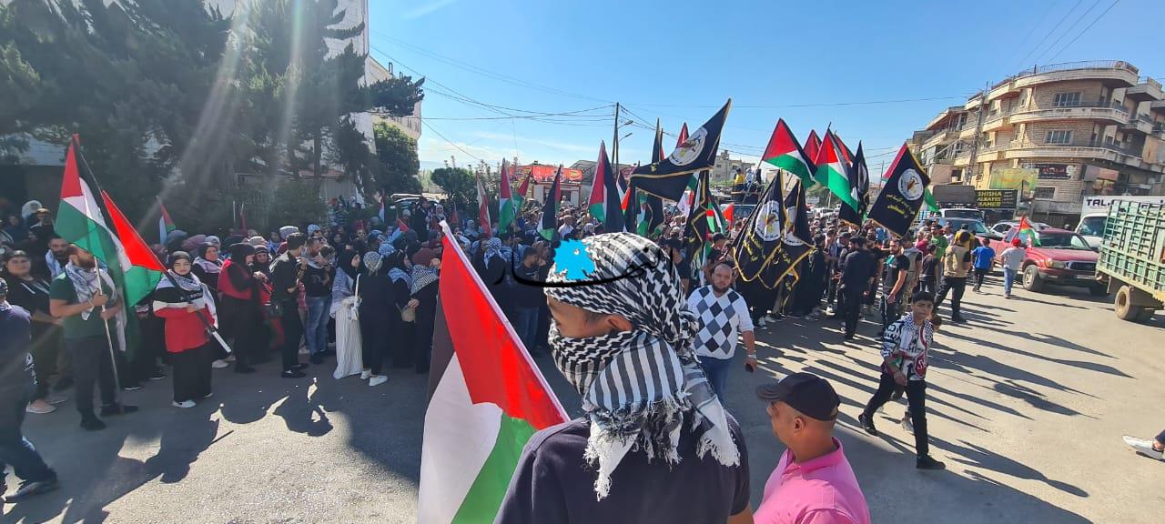 وانطلقت مسيرة حاشدة في شوارع مخيم نهر البارد شارك فيها الالاف حاملين الاعلام الفلسطينية ومرددين هتافات التأييد لغزة المقاومة ومنددين بالجرائم الوحشية التي يرتكبها جيش الاحتلال الصهيوني.