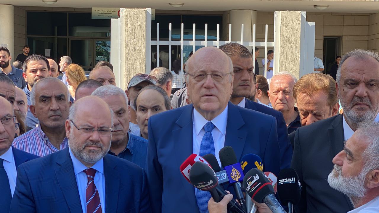 شارك رئيس حكومة تصريف الاعمال نجيب ميقاتي ظهر اليوم في الوقفة التضامنية أمام وزارة الصحة استنكارا وادانة للمجزرة الاسرائيلية في مستشفى المعمداني