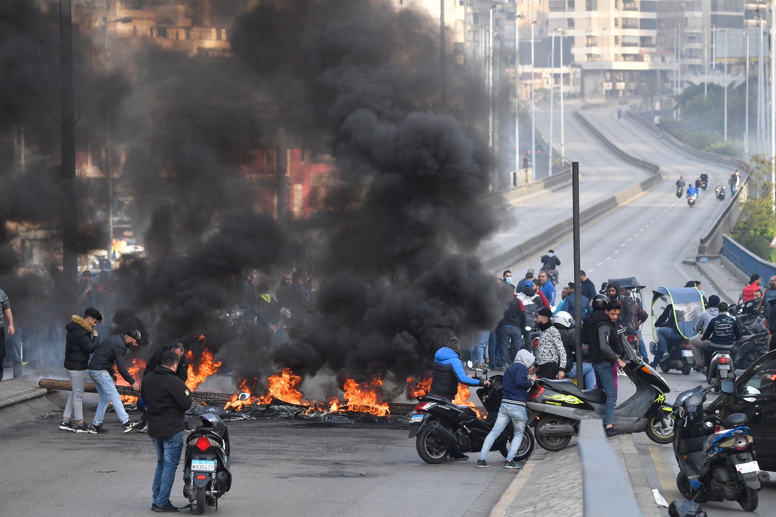 ‏تشهد مناطق لبنانية عدّة احتجاجات وإقفال طرق جرّاء تدهور الوضع المعيشي وانهيار الليرة اللبنانية إلى أدنى مستوياتها التاريخية.
