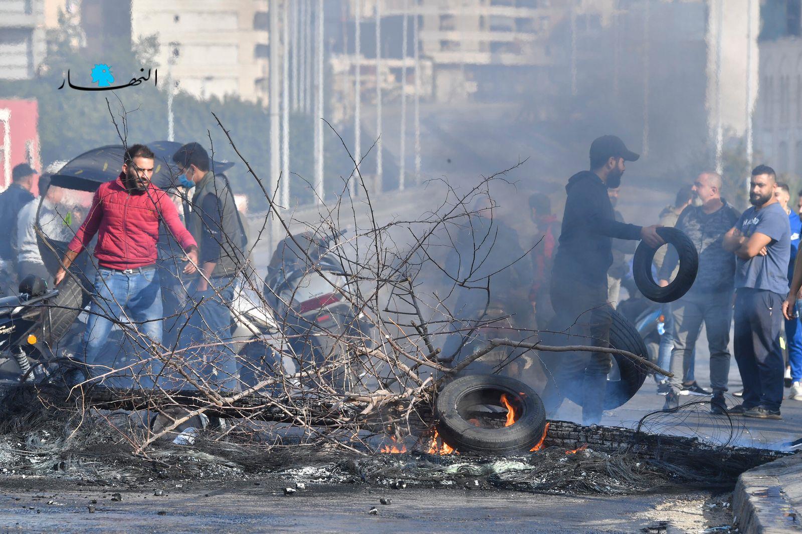 وشمالاً، قطع اوتوستراد البداوي بالاتجاهين والطرقات الفرعية بالكامل، وأقفلت جميع المسارب المؤدية إلى ساحة النور في طرابلس بالسيارات والإطارات والحجارة الباطونية.