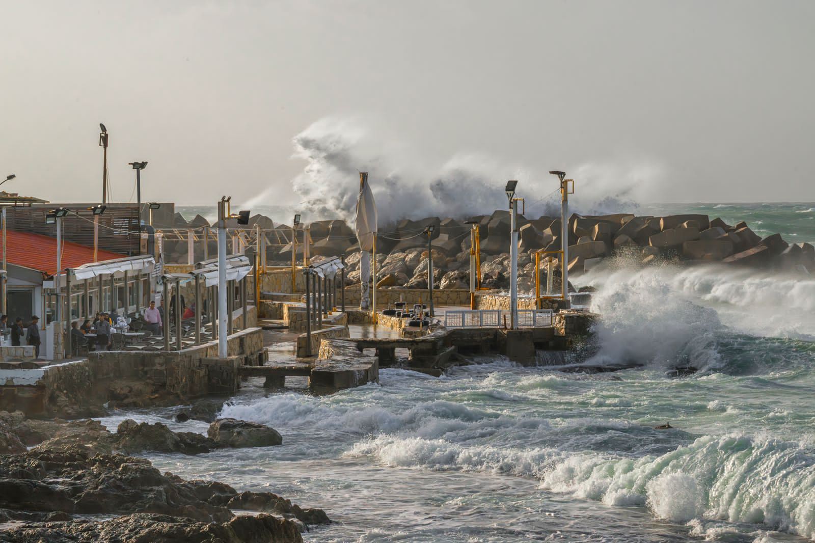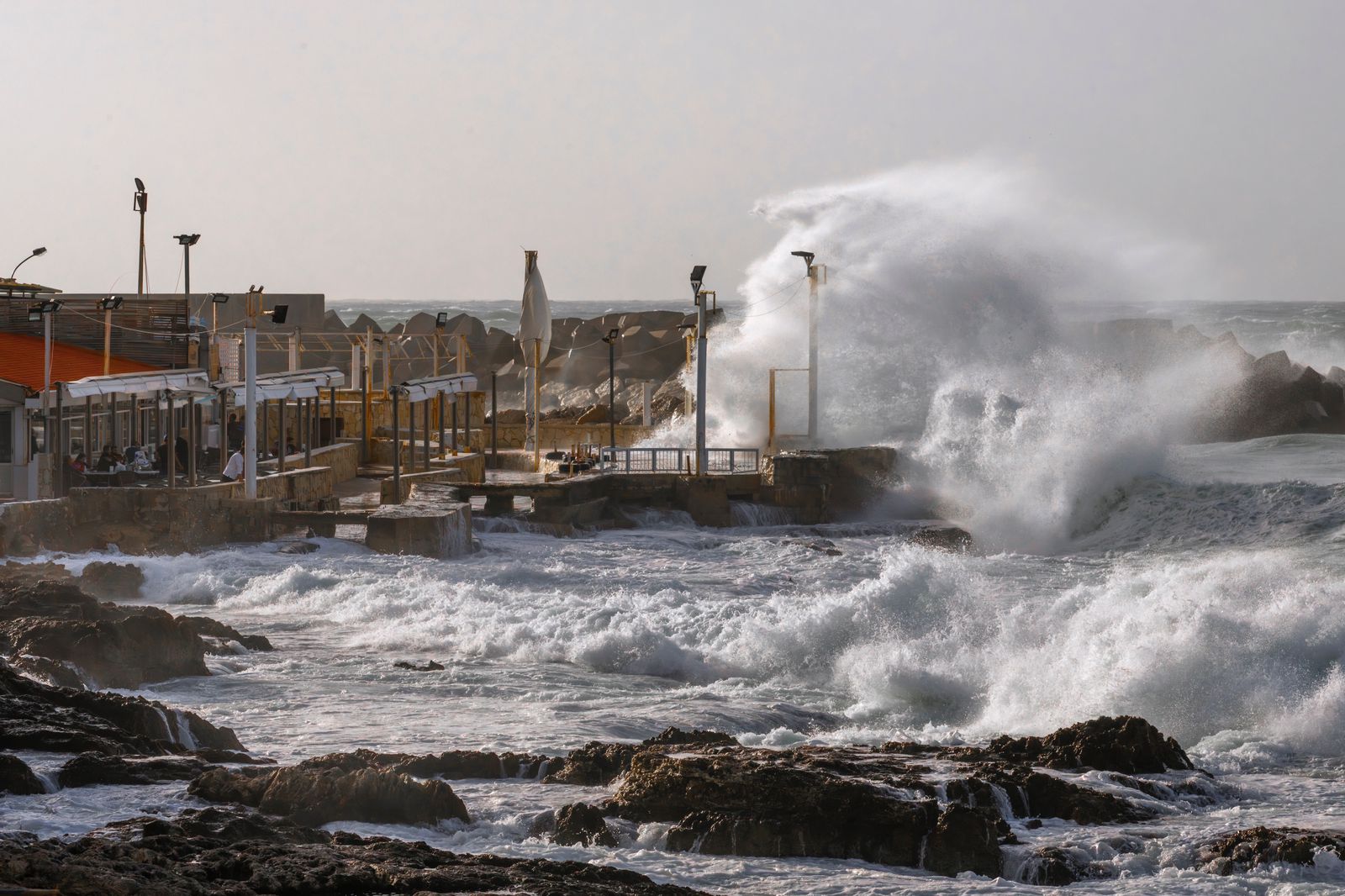 امواج تشرين الثاني تضرب مقهى "رأس بيروت" في "عين المريسة". (نبيل اسماعيل).