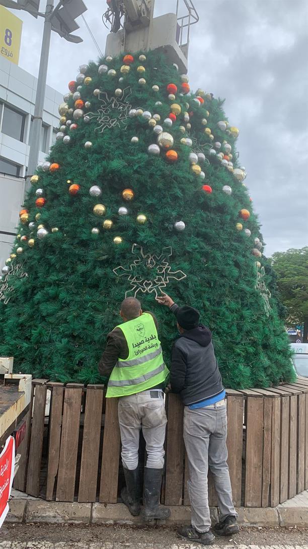 (شجرة العيد رُفعت عند المدخل الشماليّ لمدينة صور)