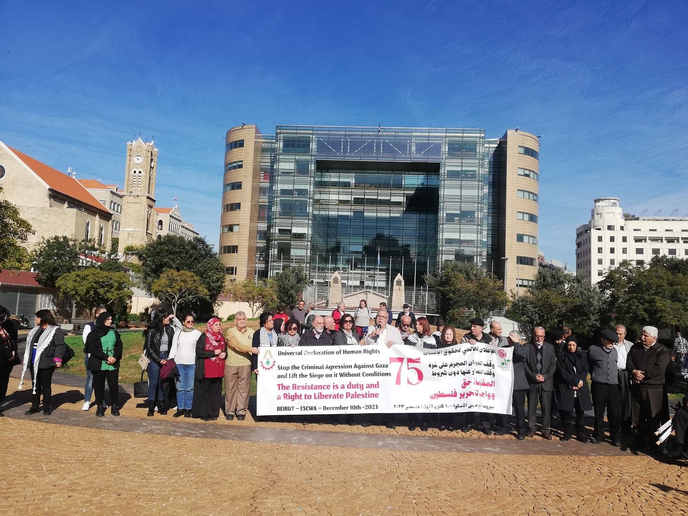 اعتصام أمام مبنى الاسكوا لمناسبة 75 عاماً على اليوم العالمي لحقوق الإنسان (حسن عسل).