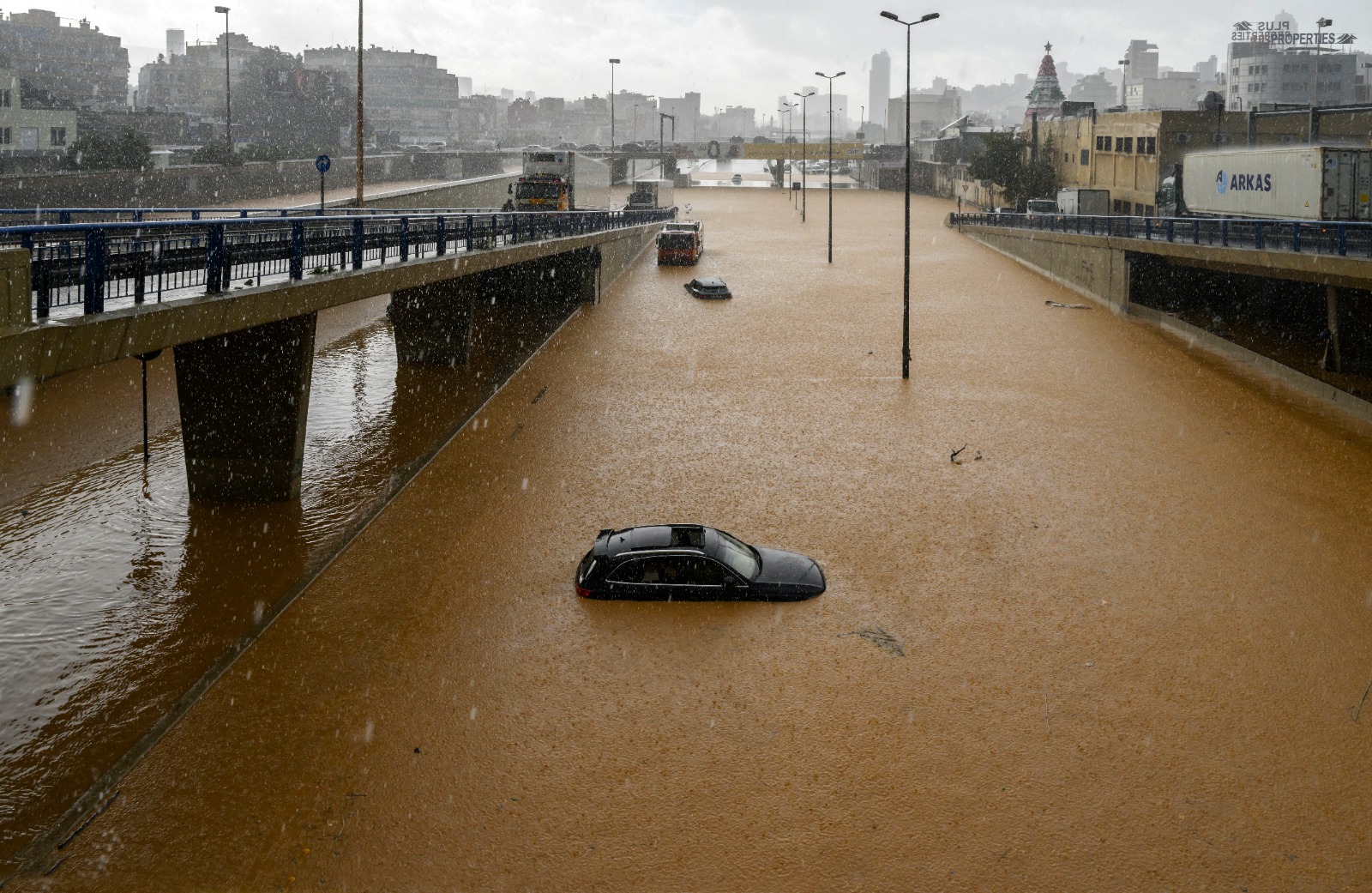4- فيضان نهر بيروت والسيول التي جرفت السيارات