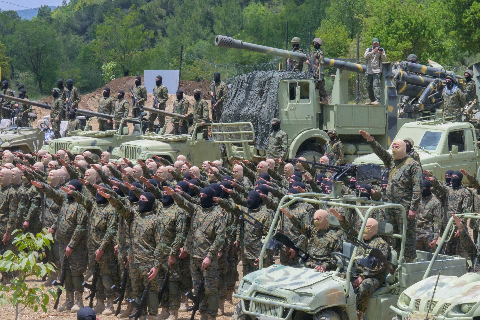 6- عناصر من "حزب الله" خلال المناورة العسكرية في بلدة عرمتا الجنوبية.