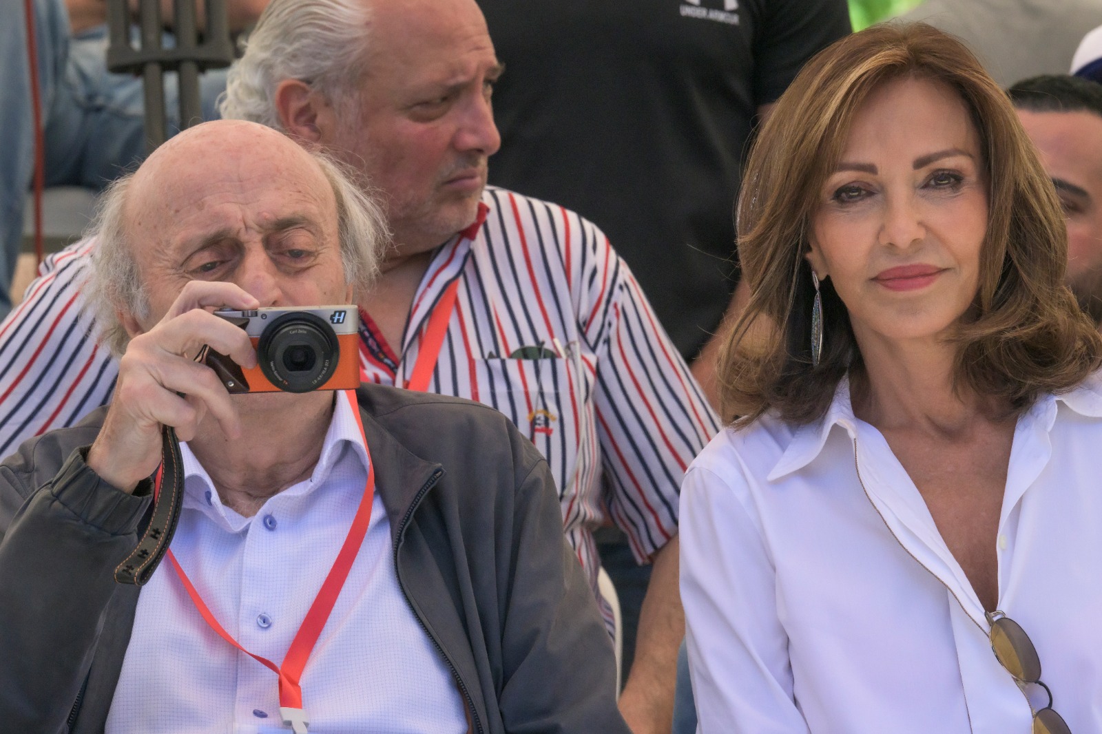 9- وليد جنبلاط الى جانب زوجته نورا جنبلاط، خلال مؤتمر للحزب الاشتراكي.